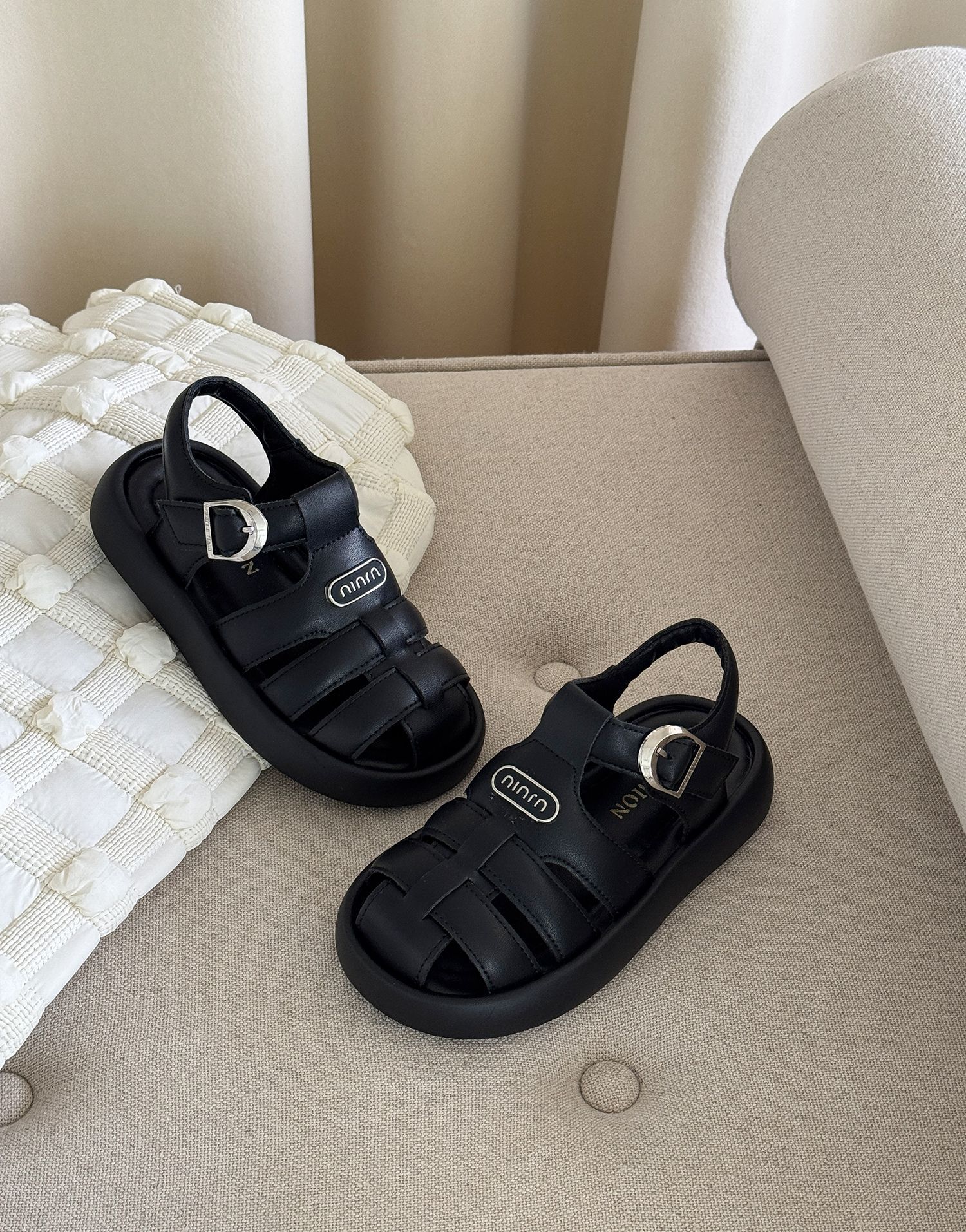 2025 여름 새로운 어린이 샌들 유럽과 미국 스타일의 소녀 로마 발가락 샌들 소년 부드러운 밑창 비치 슈즈
