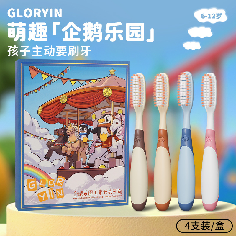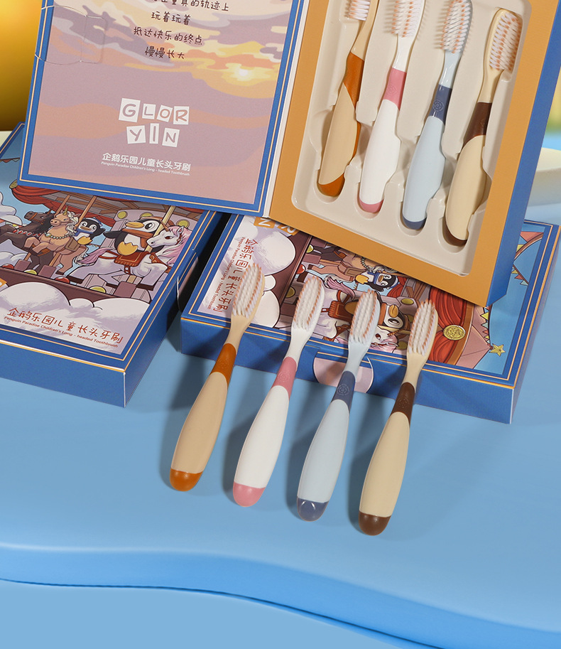 4 개의 선물 상자 어린이 부드러운 머리 가정용 칫솔 치약 보호 긴 브러시 머리 깊은 청소 초등학생 칫솔