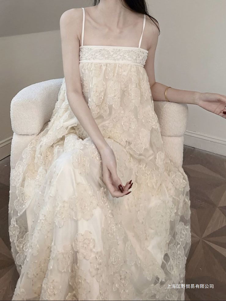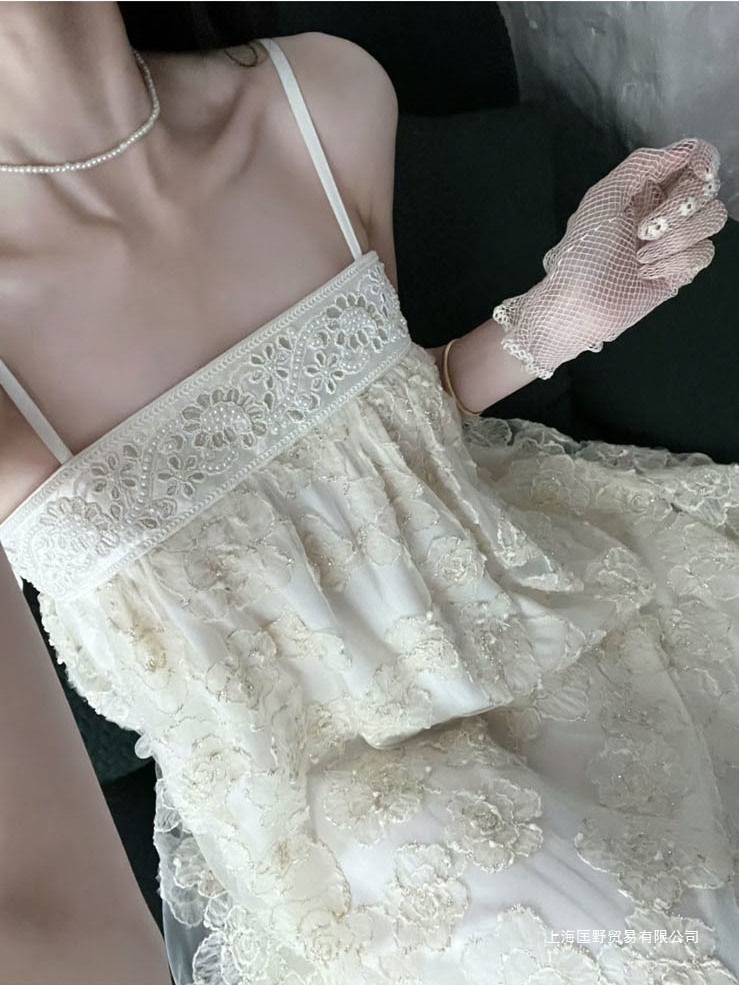 여름 원피스 틈새 디자인 느낌 요정 치마 여름 원피스 중공업 요정 자수 아이보리 기타 슬링