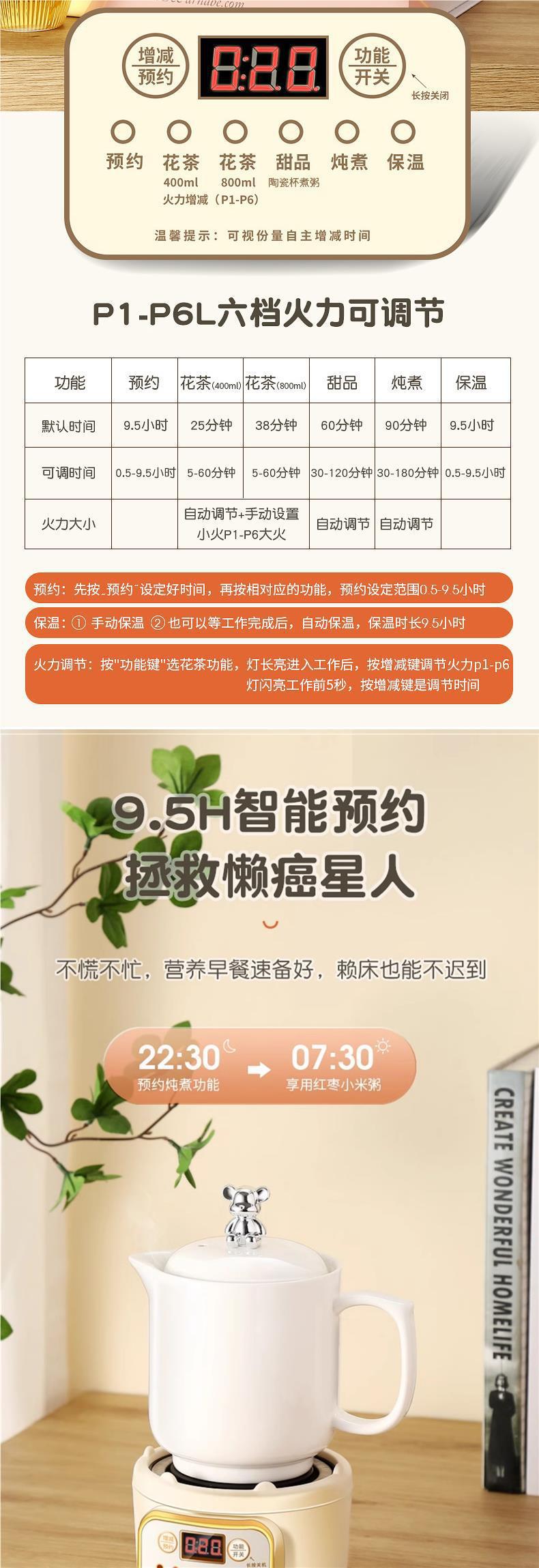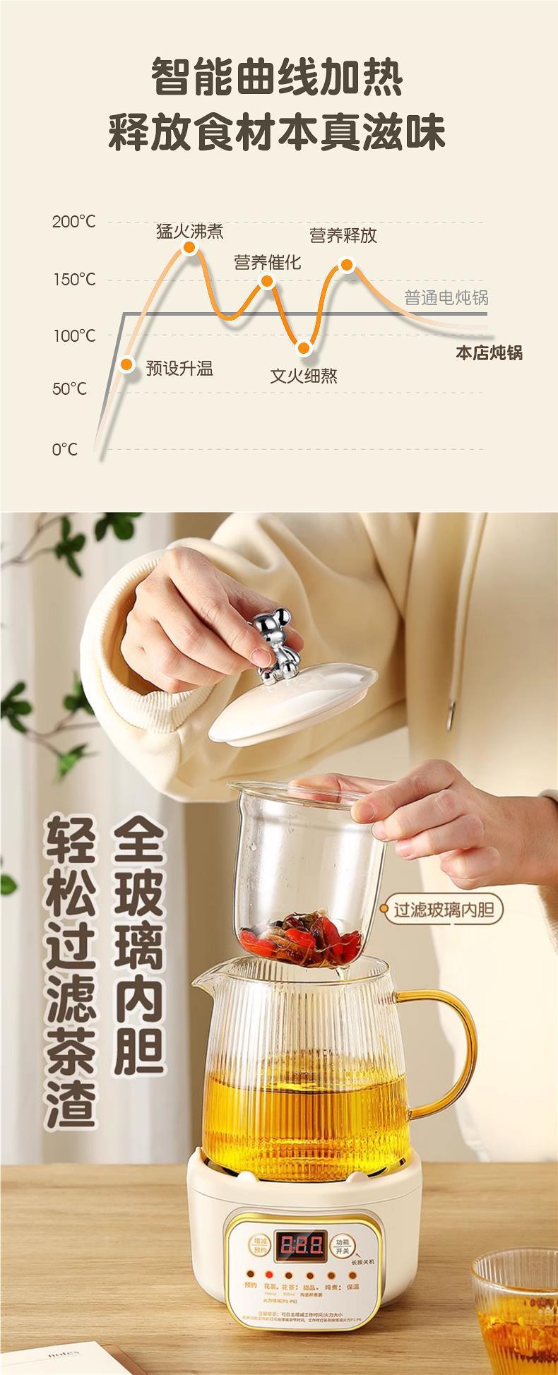 • 스마트 빠른 조리 모델 850ml + 유리차 배수구 + 세라믹 컵
