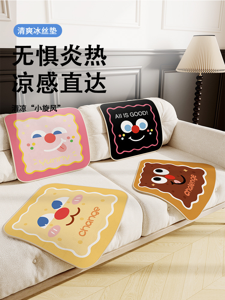 여름 시원한 얼음 실크 쿠션 사무실 학생 컴퓨터 의자 쿠션 만화 스타일 멋진 통기성 홈 소파 쿠션스토어 가기