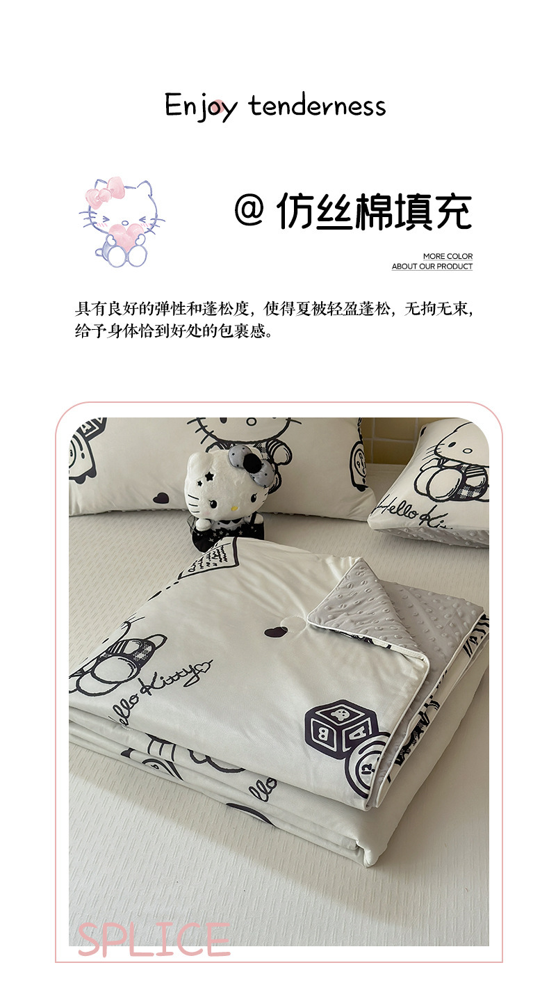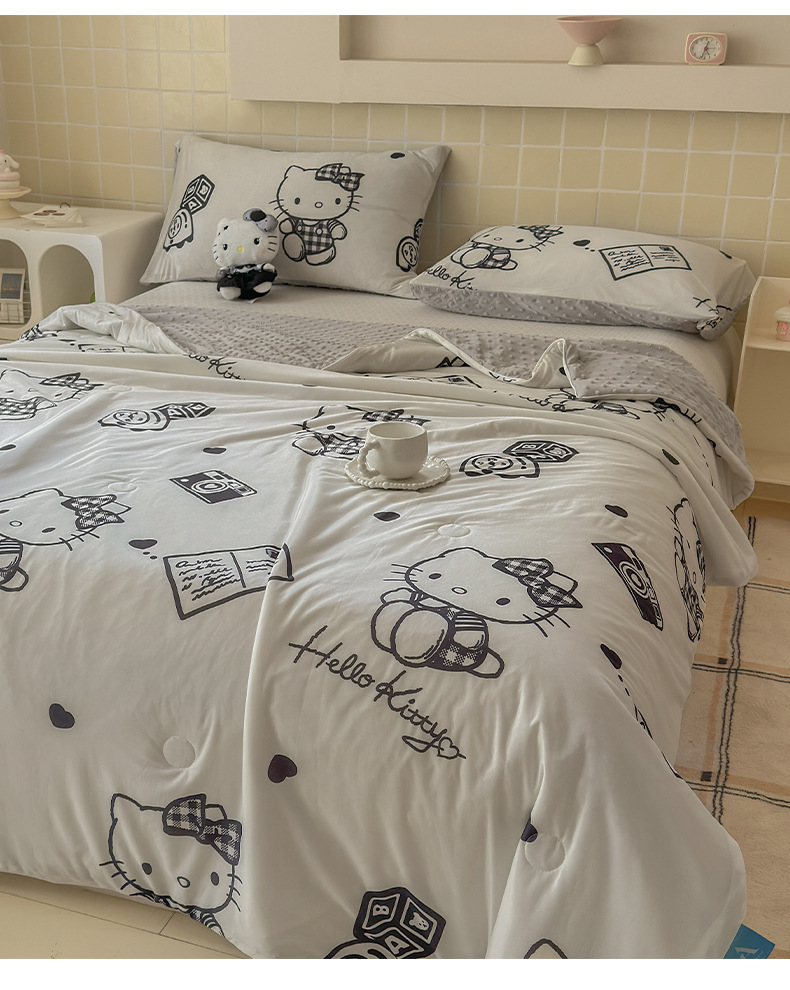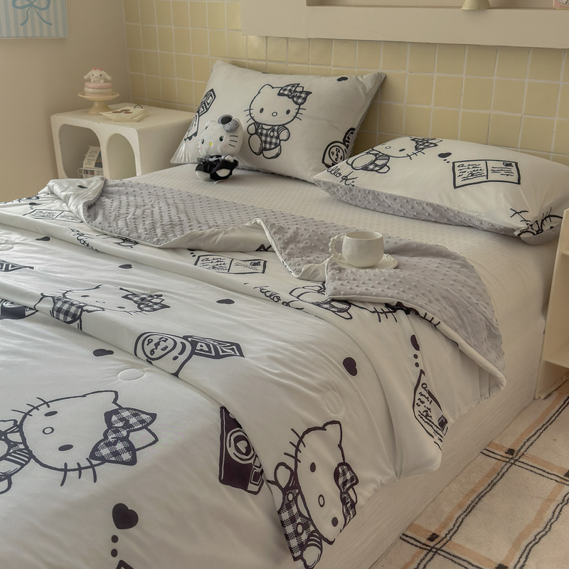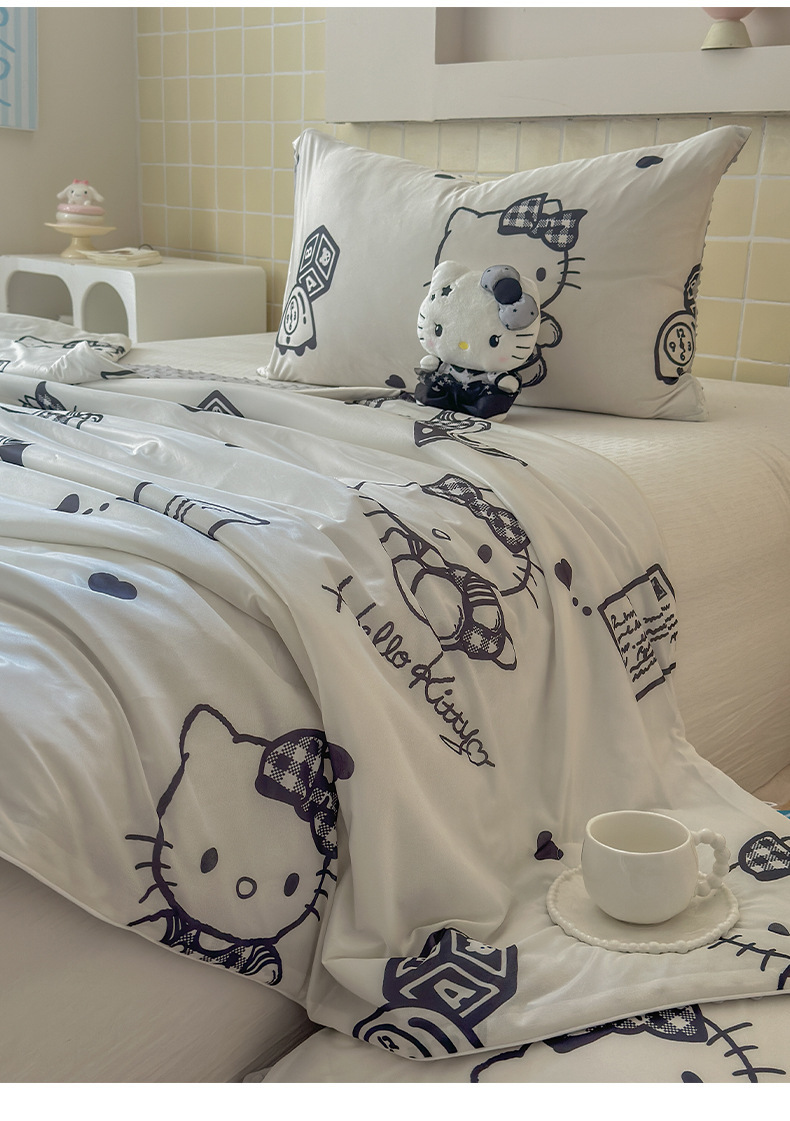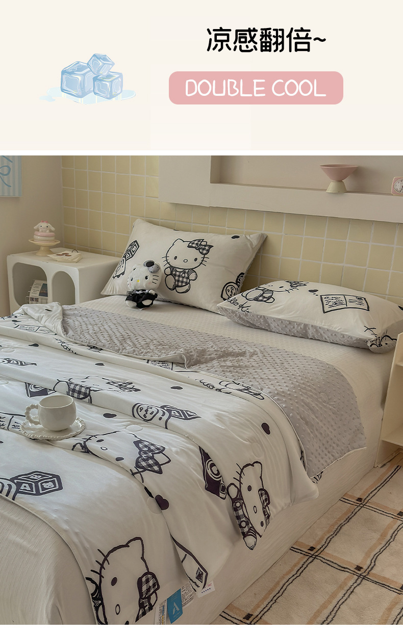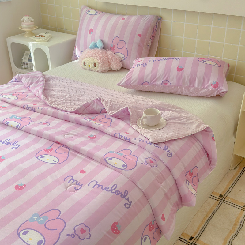 세탁 가능한 여름 시원한 이불 얇은 이불 여름 산리오 만화 아이스 실크 콩 이불 어린이 여름 이불 에어컨 이불 코어