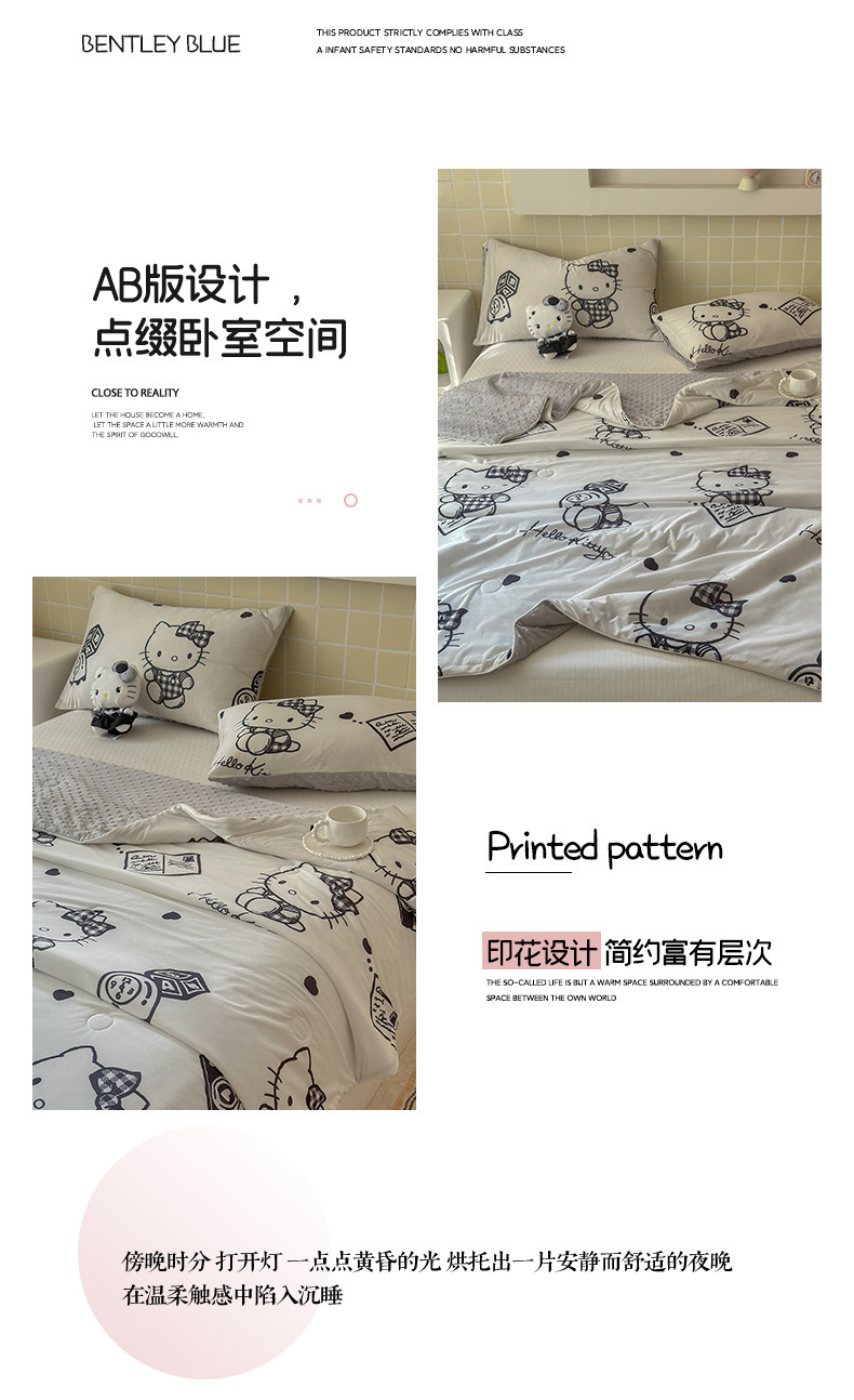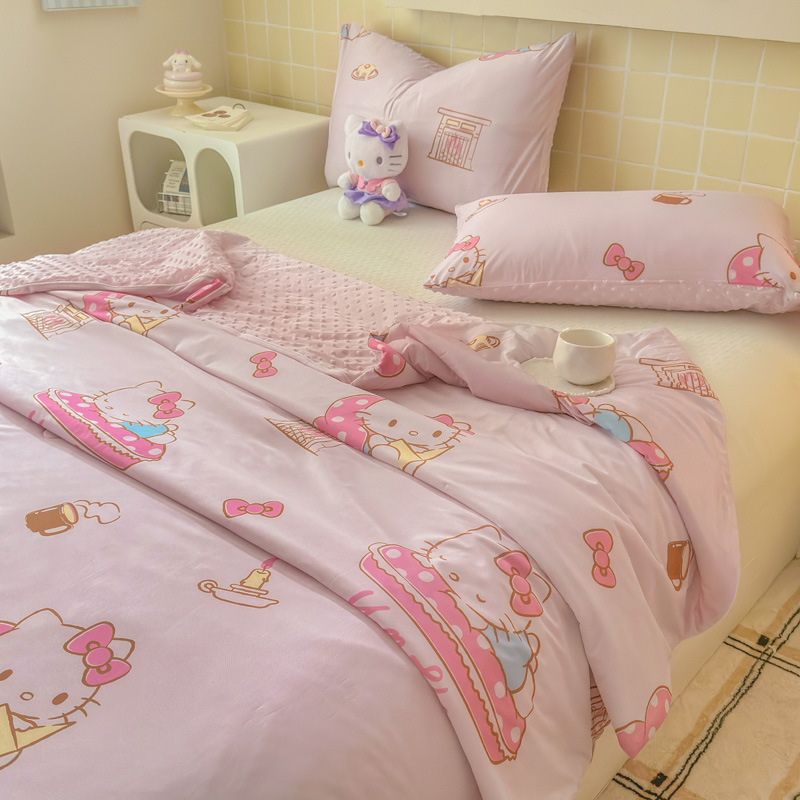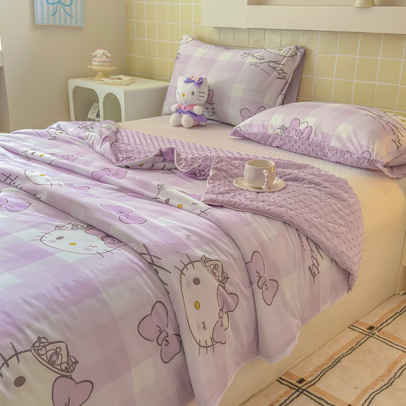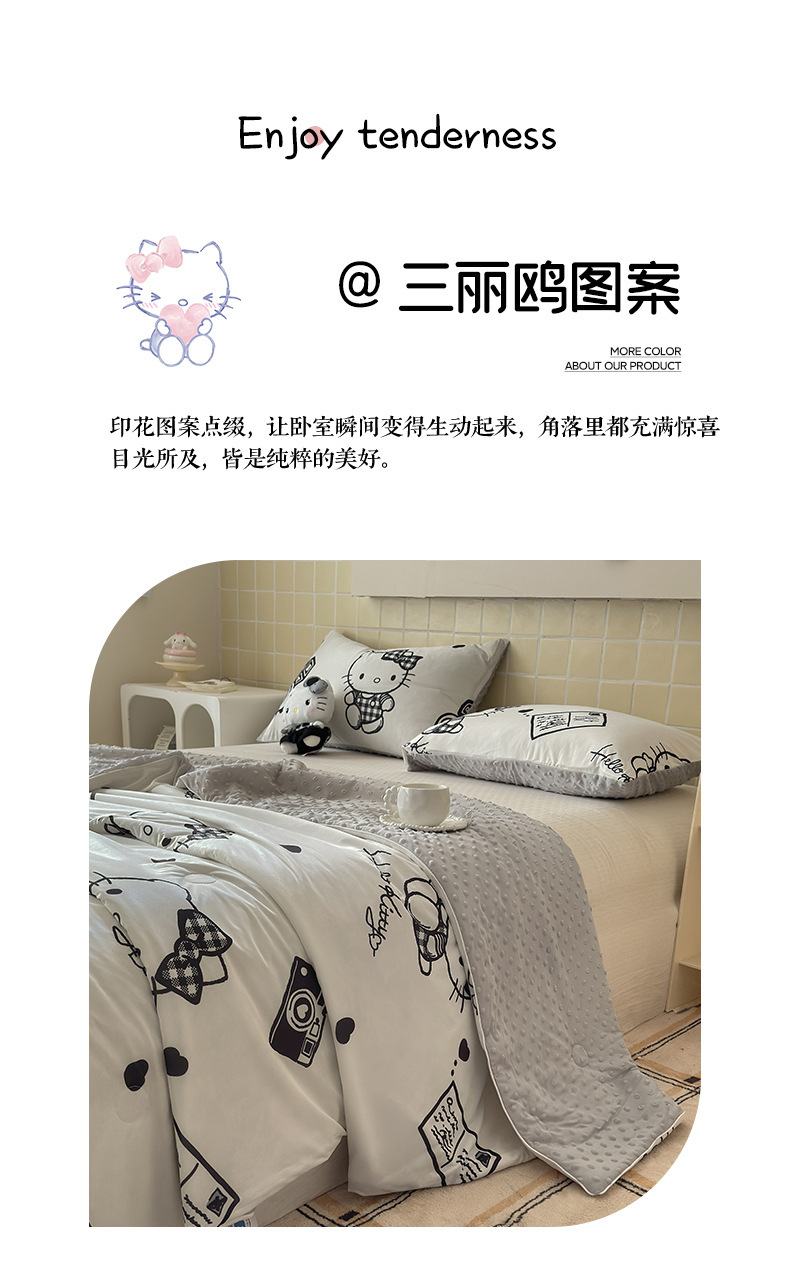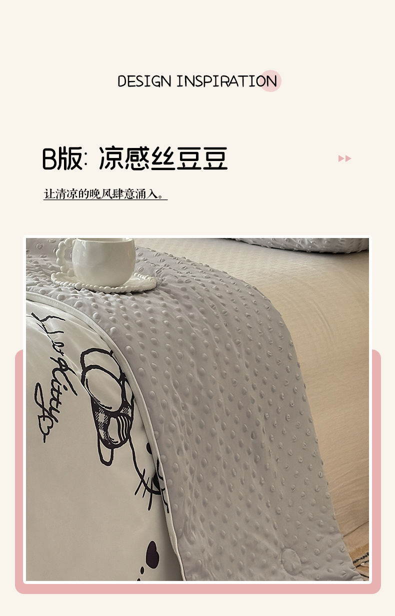 세탁 가능한 여름 시원한 이불 얇은 이불 여름 산리오 만화 아이스 실크 콩 이불 어린이 여름 이불 에어컨 이불 코어