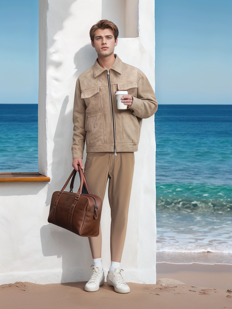 유럽과 미국의 국경 남성 패션 자켓 스웨이드 남성 지퍼 대형 포켓 캐주얼 옷깃 봄과 가을 재킷 코트 남성