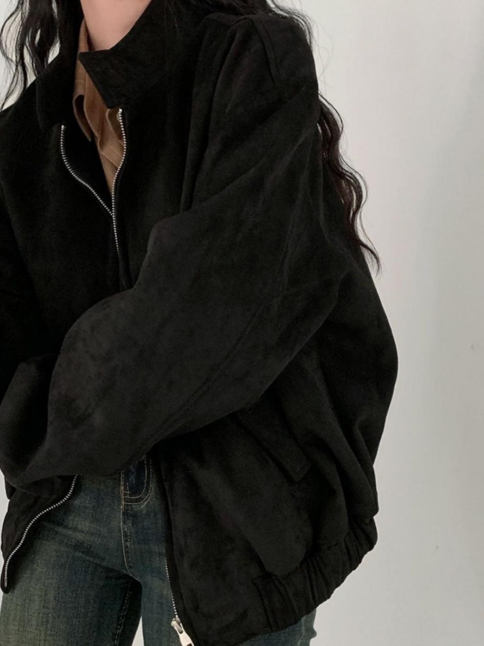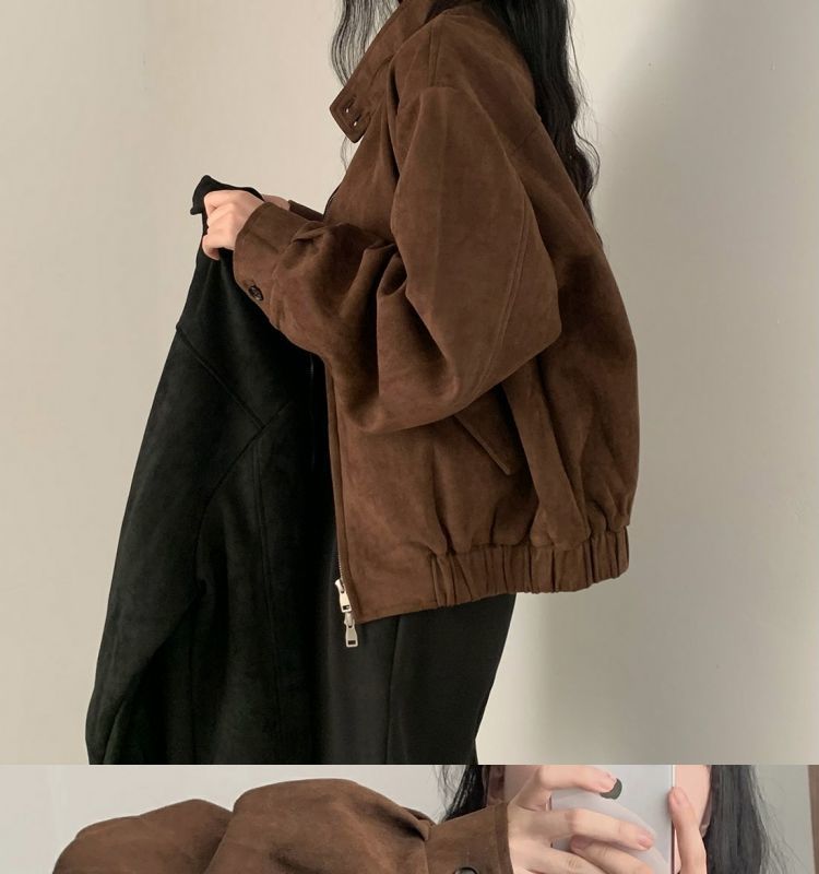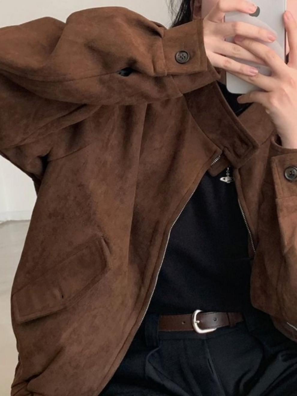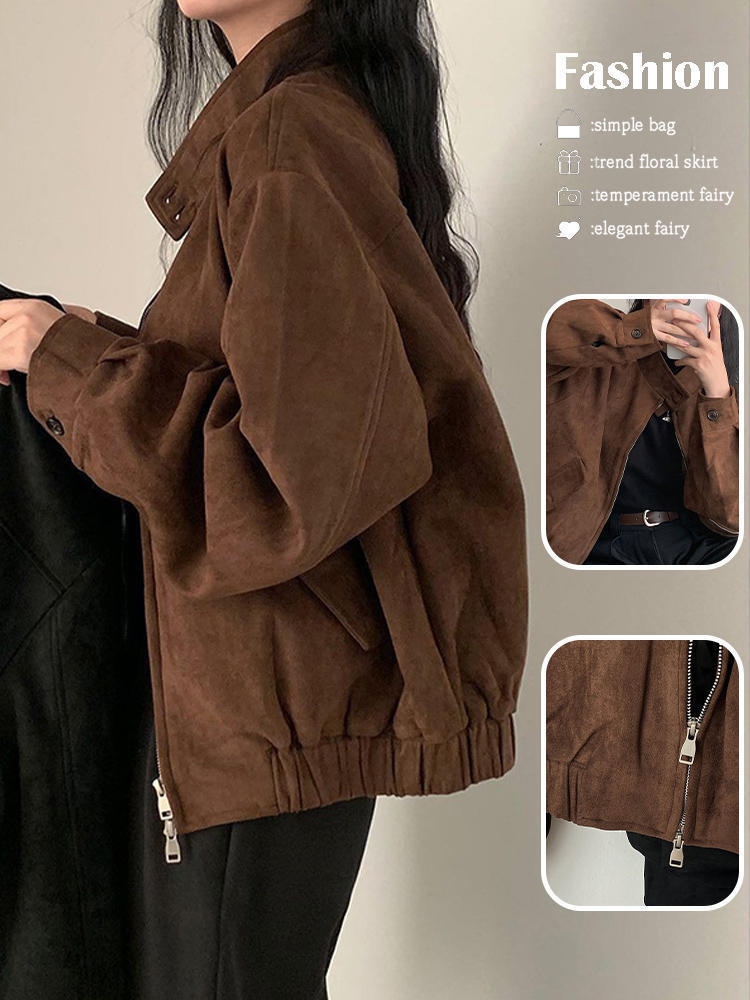 Shanli Dadi 봄과 가을 새로운 모조 사슴 가죽 벨벳 자켓 여성 메일라드 아메리칸 레트로 짧은 탑 루즈 자켓