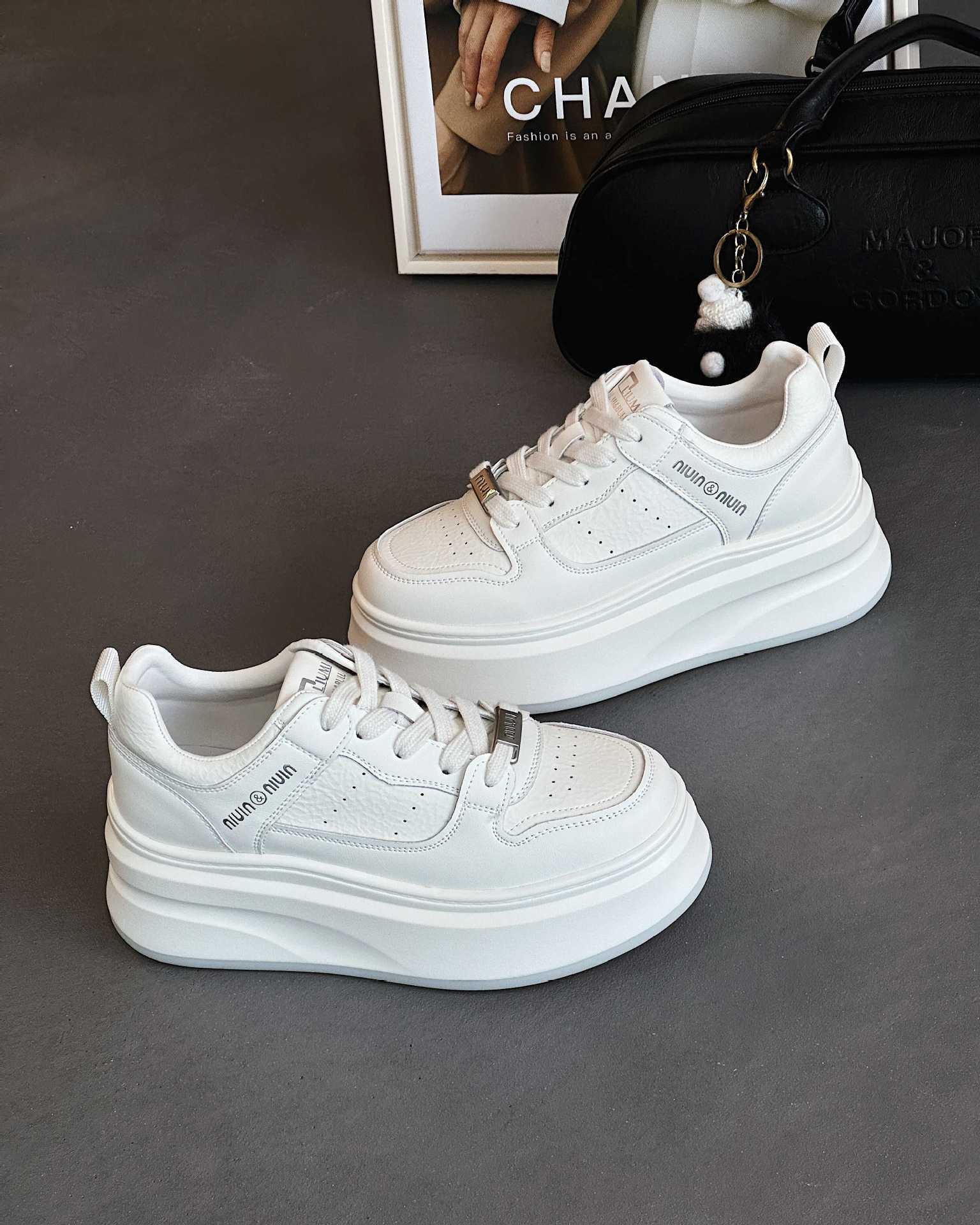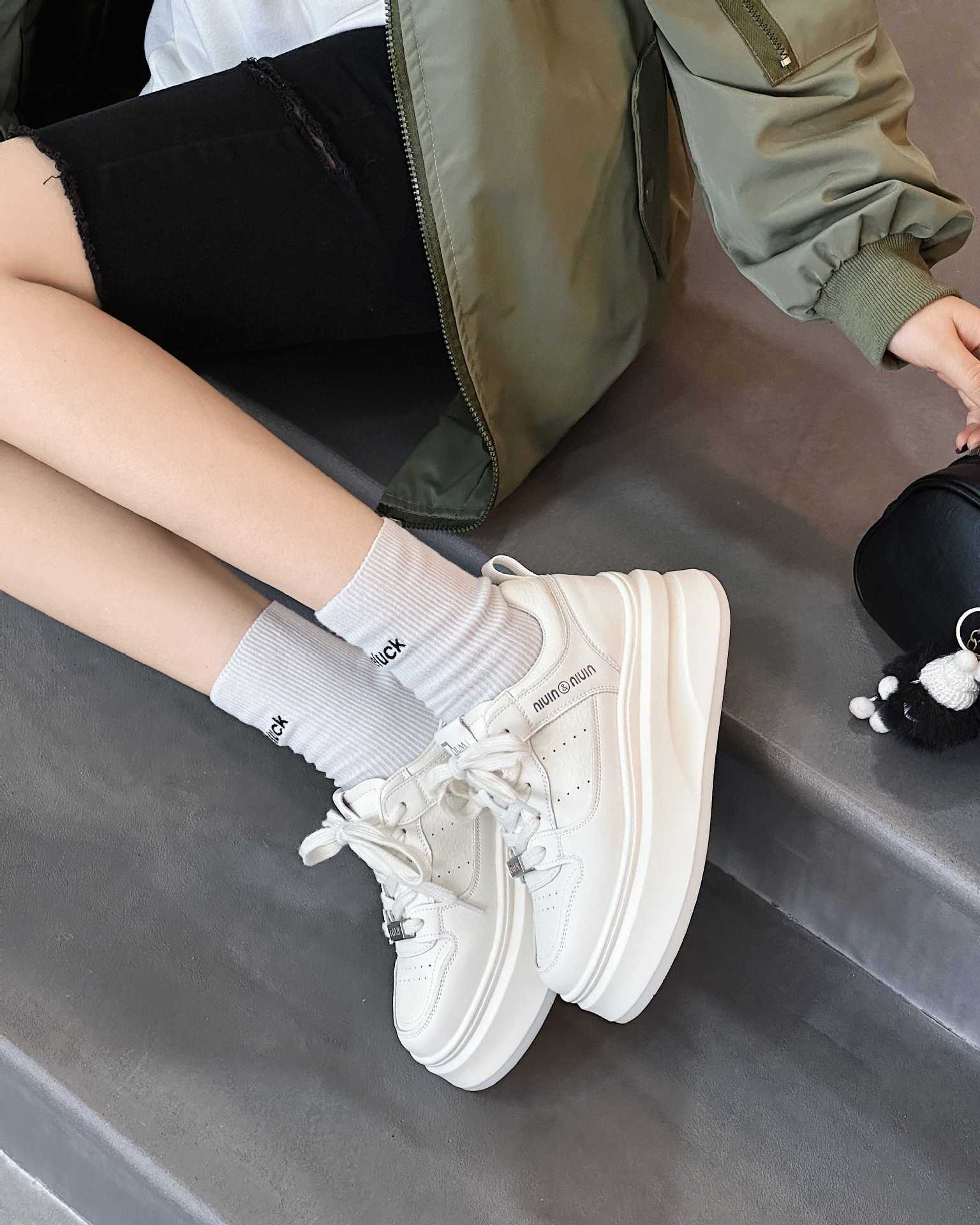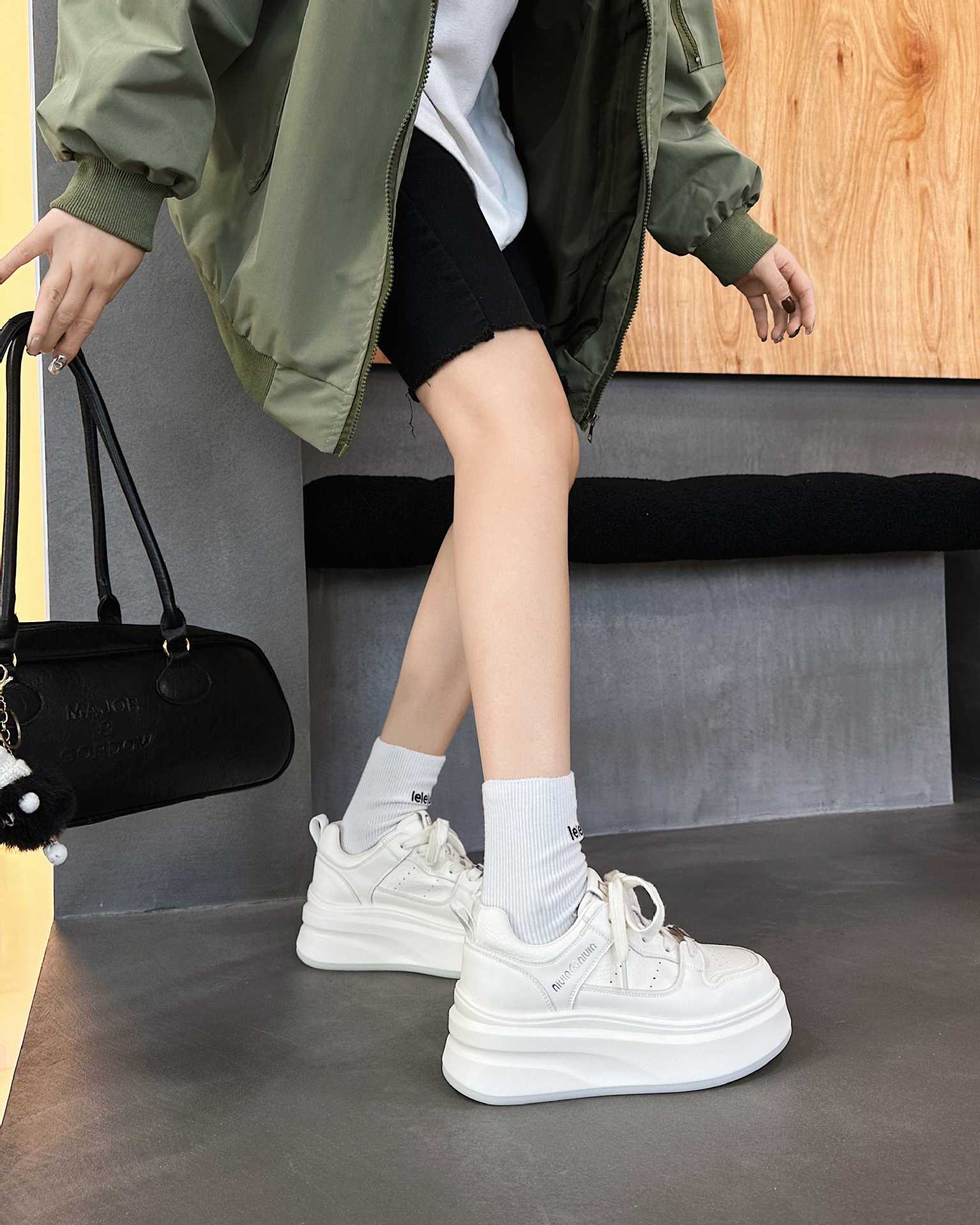 정품 가죽 5CM 증가 흡입 필름 바닥 흰색 신발 여성 여름 여성 신발 두꺼운 바닥 통기성 캐주얼 올 매치 스니커즈 NW2505스토어 가기