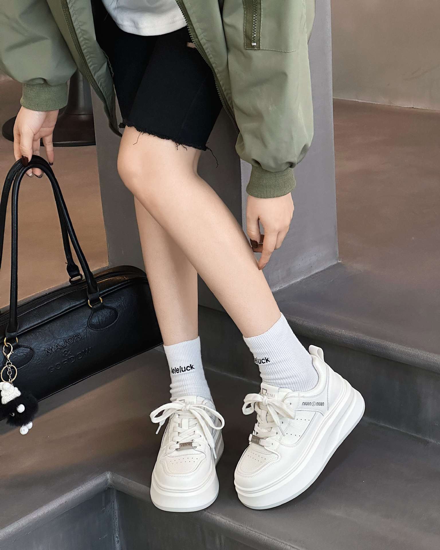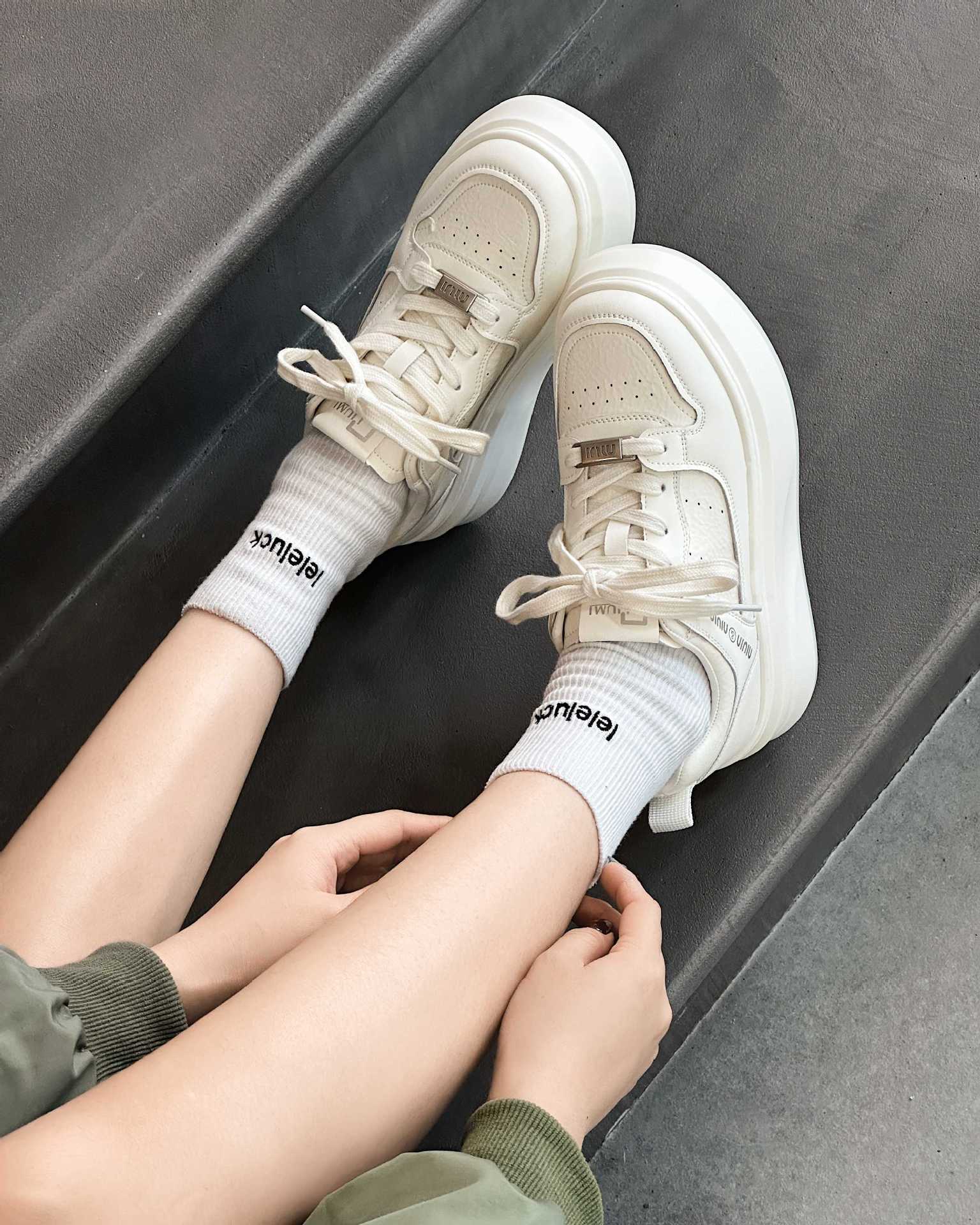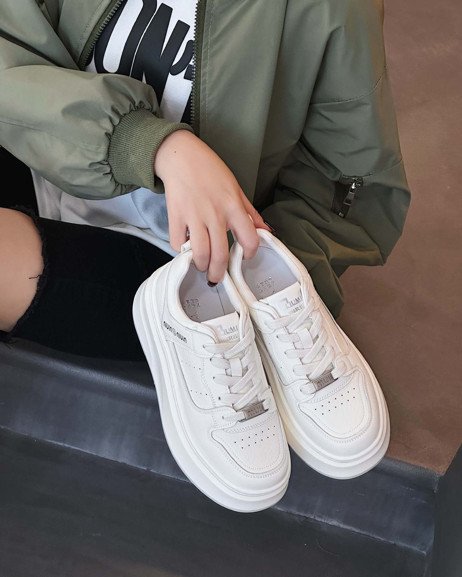 정품 가죽 5CM 증가 흡입 필름 바닥 흰색 신발 여성 여름 여성 신발 두꺼운 바닥 통기성 캐주얼 올 매치 스니커즈 NW2505스토어 가기
