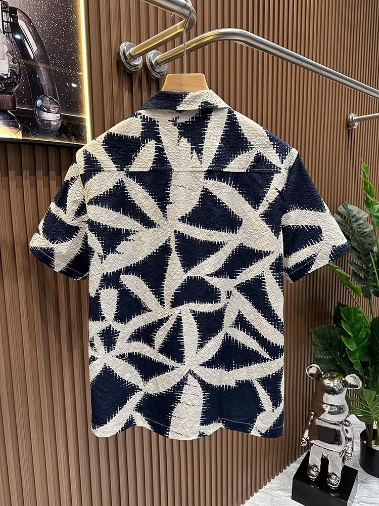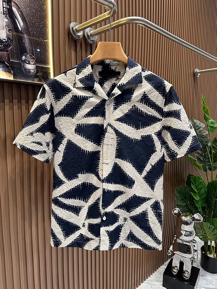가벼운 럭셔리 캐주얼 자카드 반팔 셔츠 여름 남성용 트렌디 브랜드 Ins 패셔블 라펠 리퍼 핸드솜 반팔 셔츠