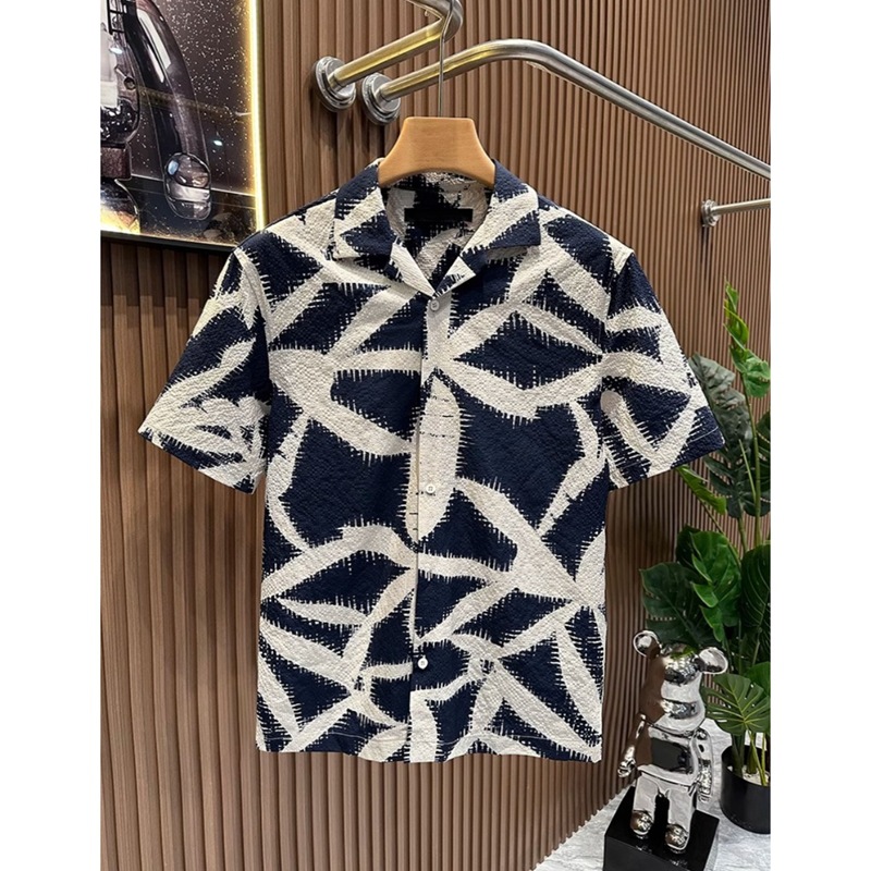 가벼운 럭셔리 캐주얼 자카드 반팔 셔츠 여름 남성용 트렌디 브랜드 Ins 패셔블 라펠 리퍼 핸드솜 반팔 셔츠스토어 가기
