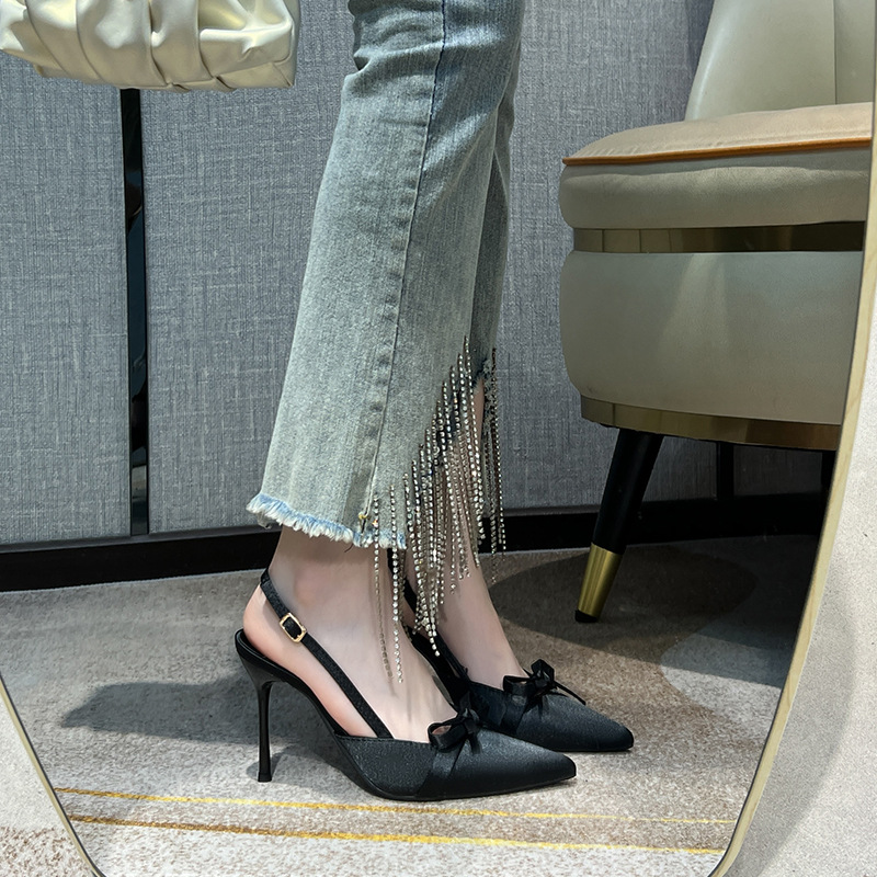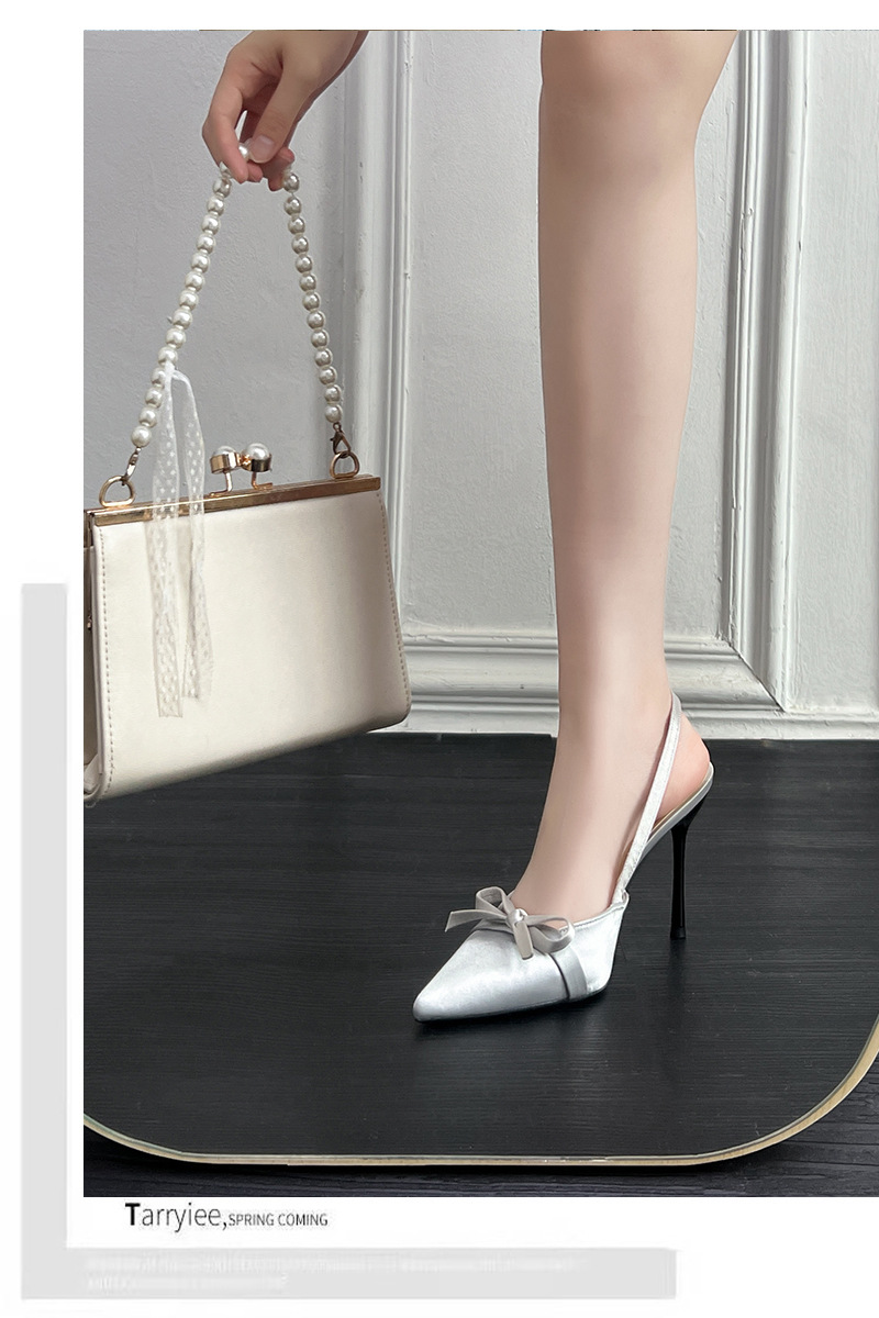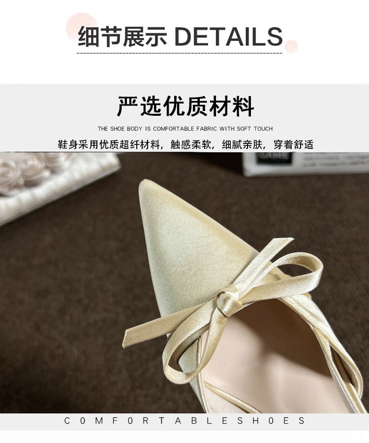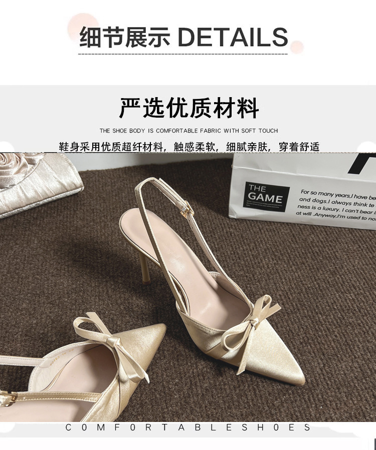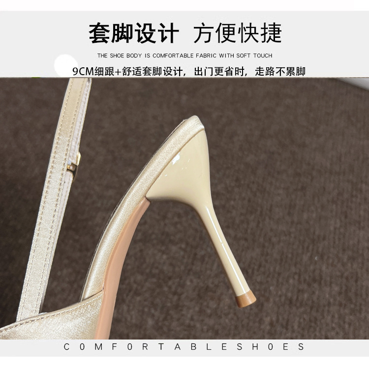 활 하이힐 여성용 스틸레토 힐 2025 봄과 여름 새로운 스타일 바오터우 샴페인 컬러 새틴 저녁 우아한 샌들스토어 가기