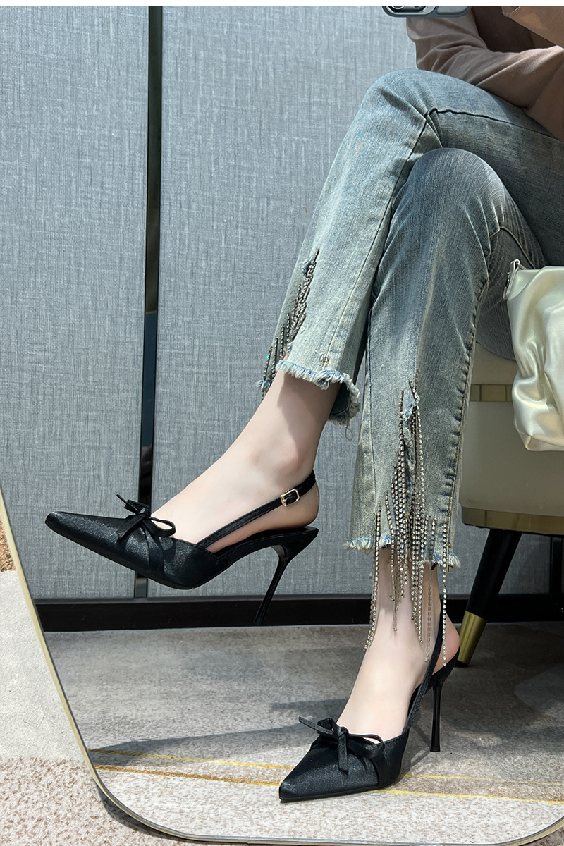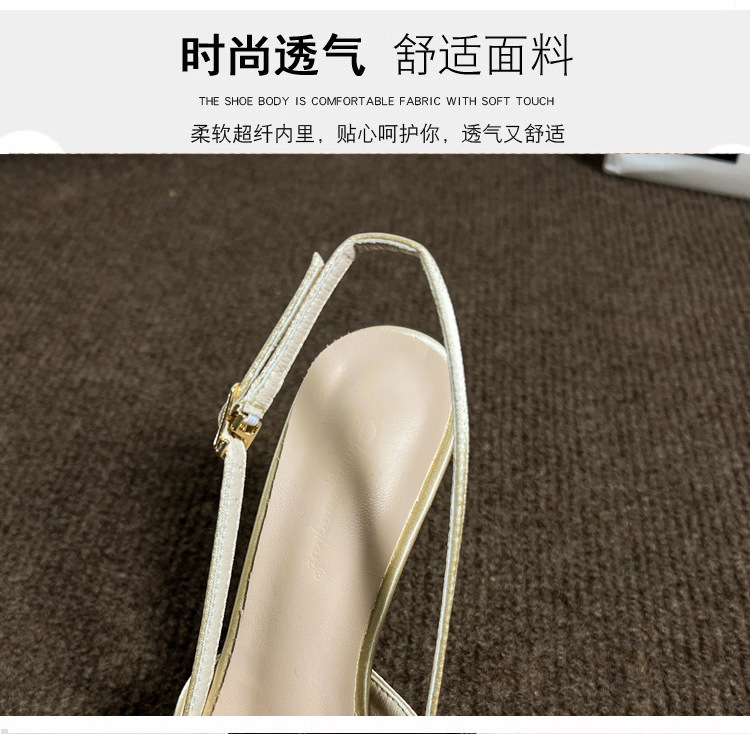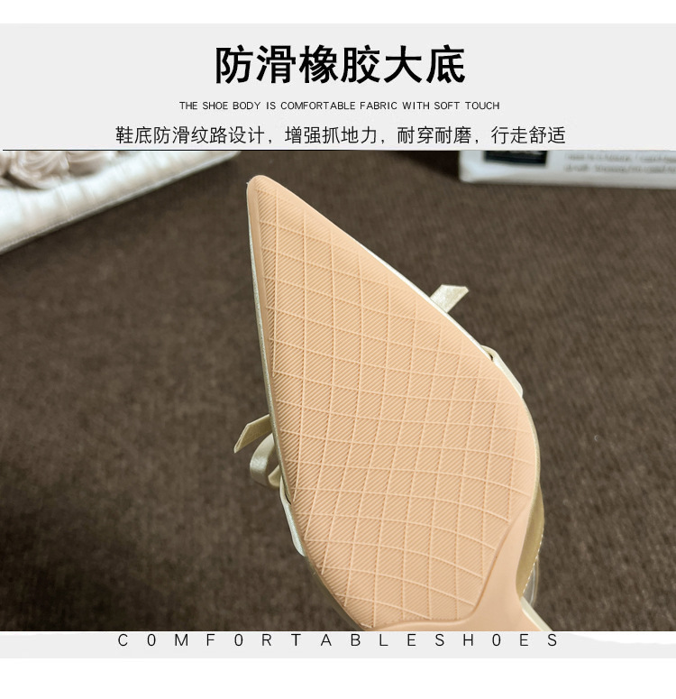 활 하이힐 여성용 스틸레토 힐 2025 봄과 여름 새로운 스타일 바오터우 샴페인 컬러 새틴 저녁 우아한 샌들