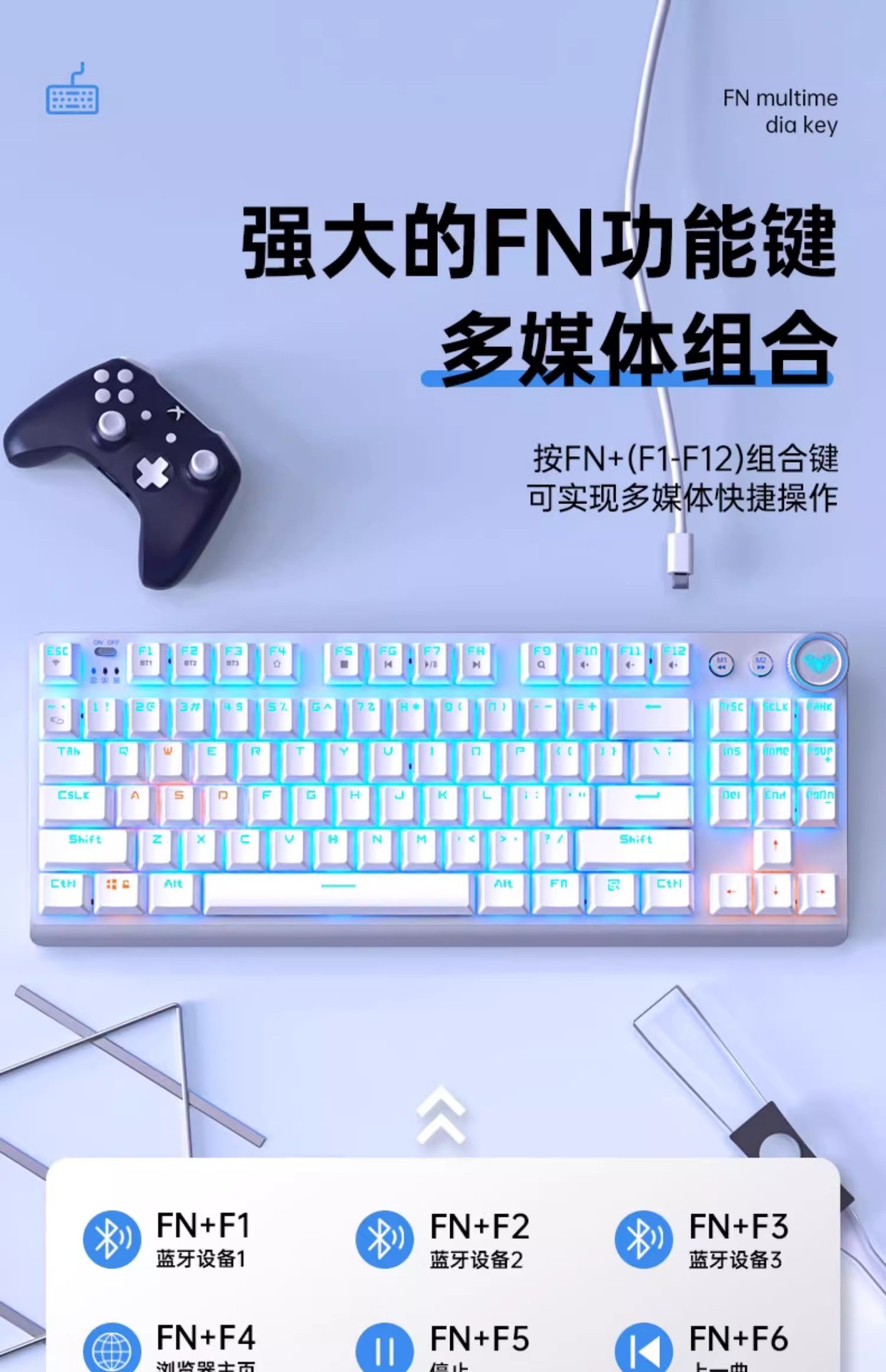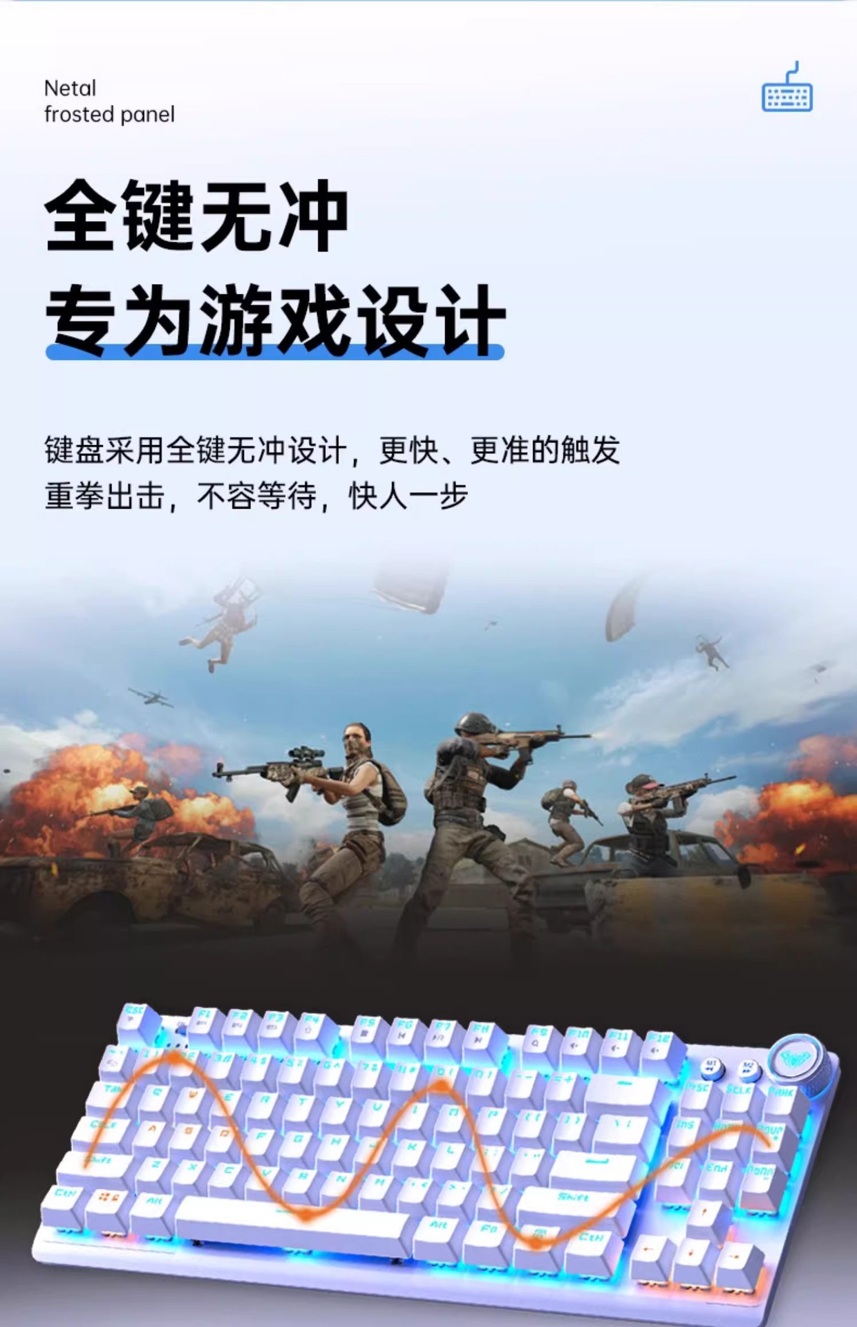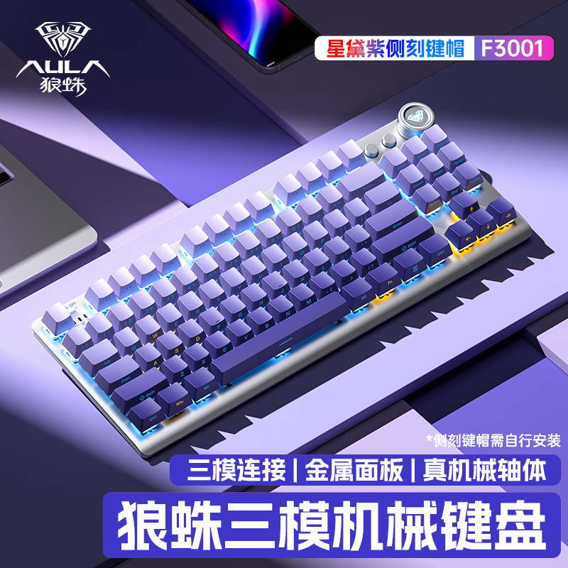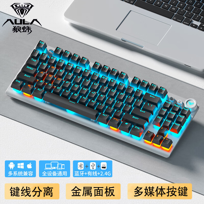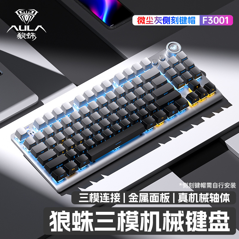 Wolf Spider F3001 그라디언트 측면 새겨진 3 모드 기계식 키보드 87 키 고가치 홈 e-스포츠 게임 키보드스토어 가기