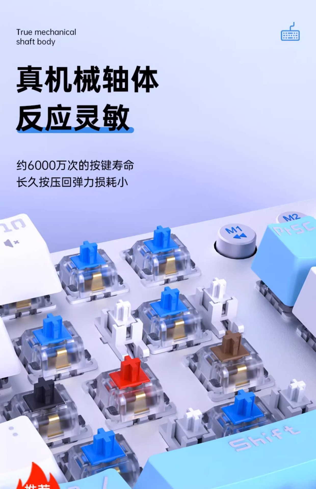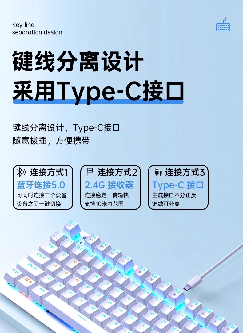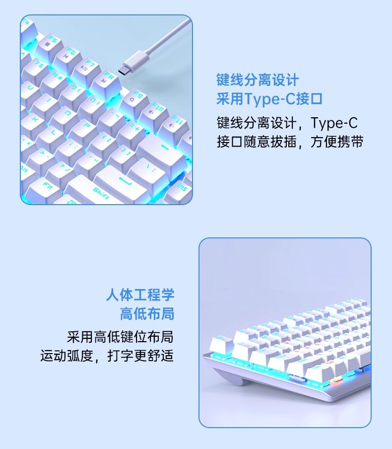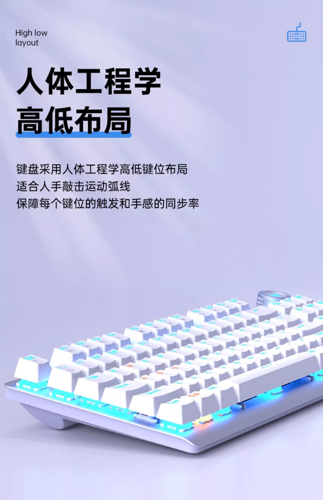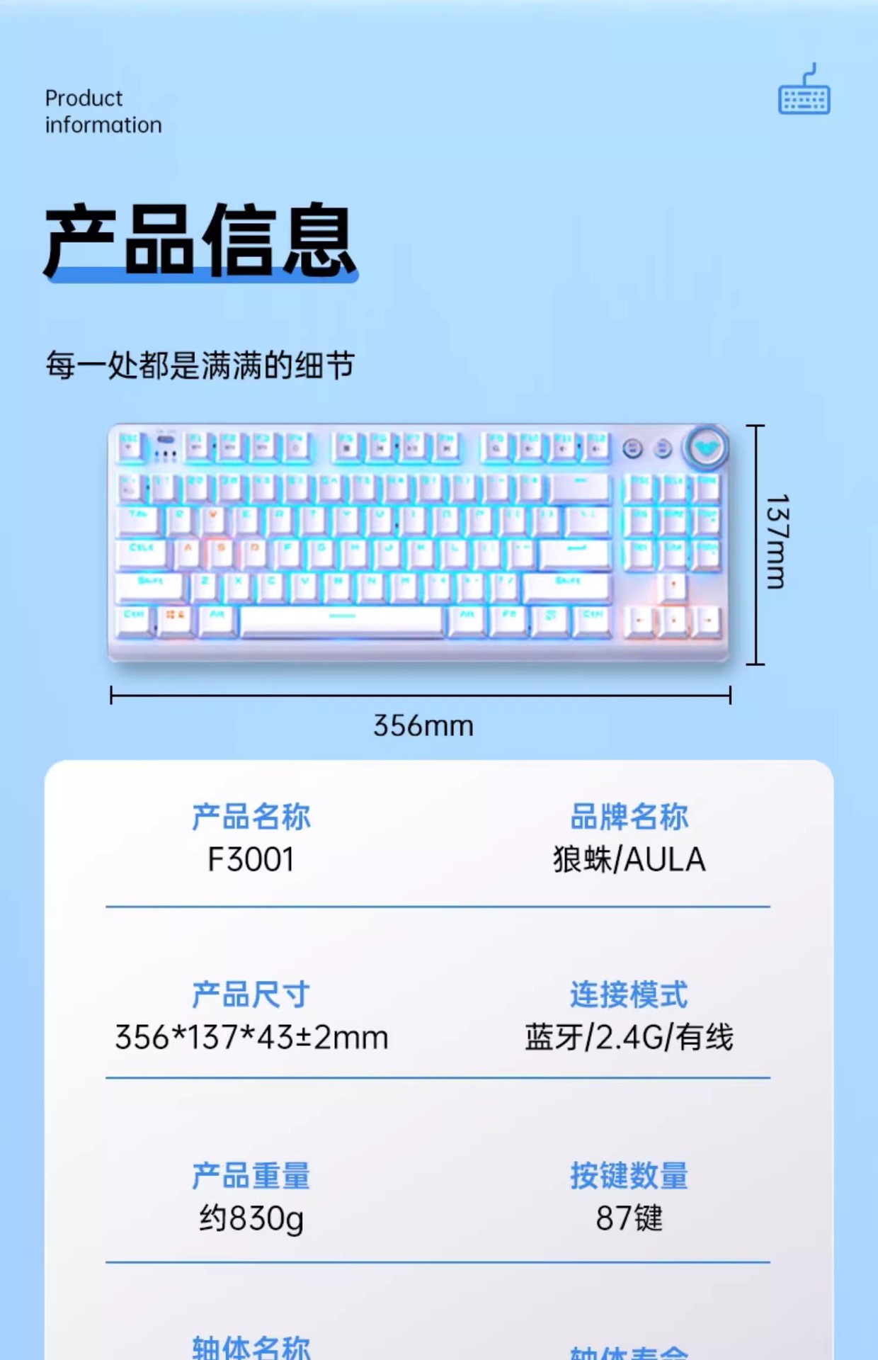 Wolf Spider F3001 그라디언트 측면 새겨진 3 모드 기계식 키보드 87 키 고가치 홈 e-스포츠 게임 키보드스토어 가기