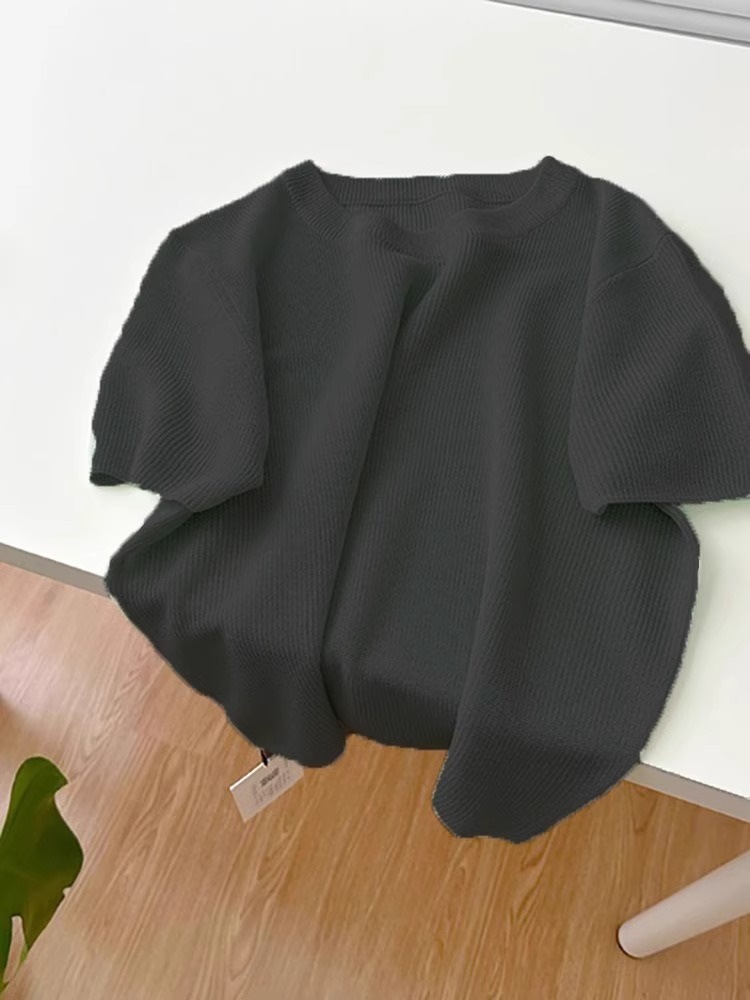 민트 그린 아이스 실크 니트 반팔 티셔츠 여성 여름 2025 새로운 하이 엔드 센스 숄더 티셔츠 쇼트 탑스토어 가기