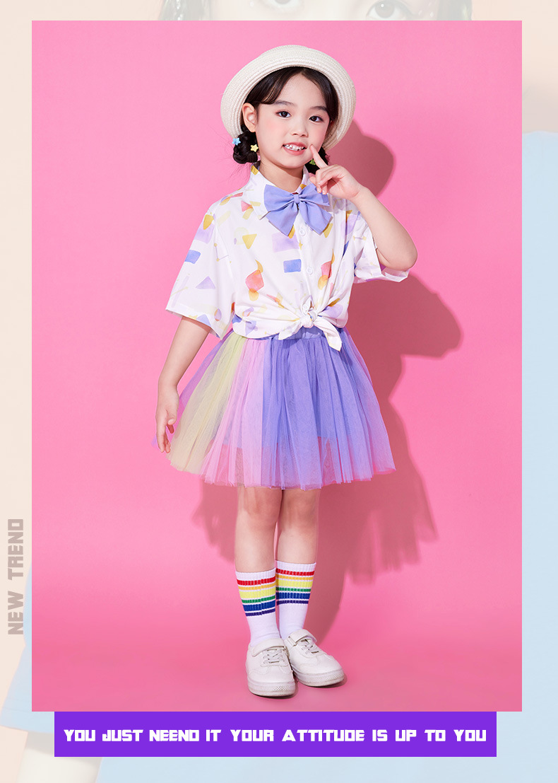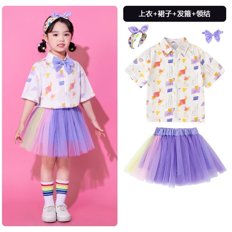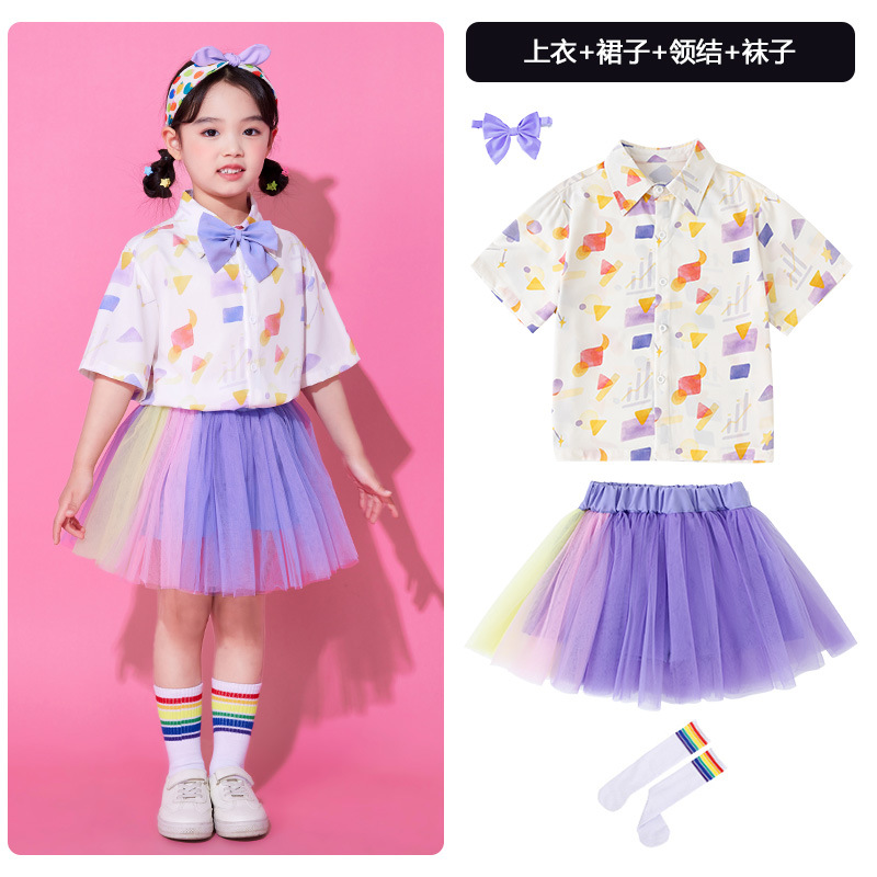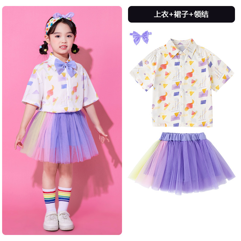 어린이 6 월 1 일 어린이 공연 의상 유치원 소년 소녀 치어 리더 클래스 의상 초등학생 코러스 베일 원피스 공연 의상