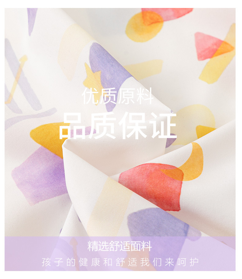 • A502 보라색 기하학 셔츠 + Q12 보라색 배색 거즈 스커트 + 보라색 나비넥타이 + 보라색 딸기 머리띠 + 무지개 튜브 양말