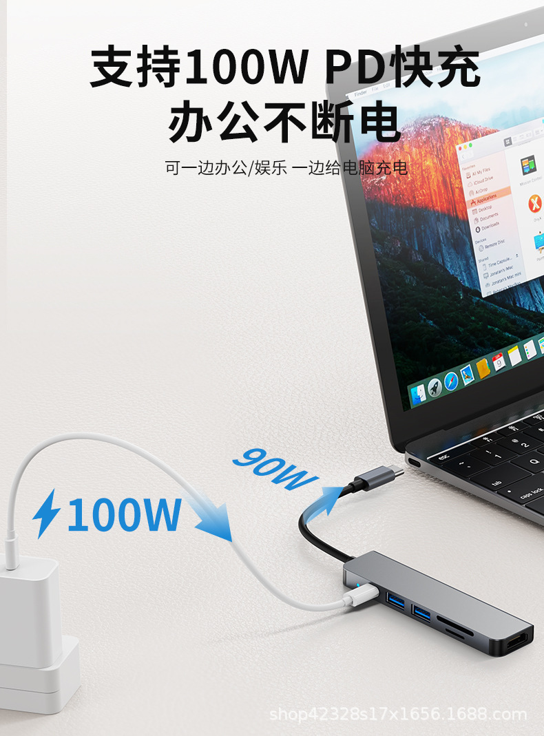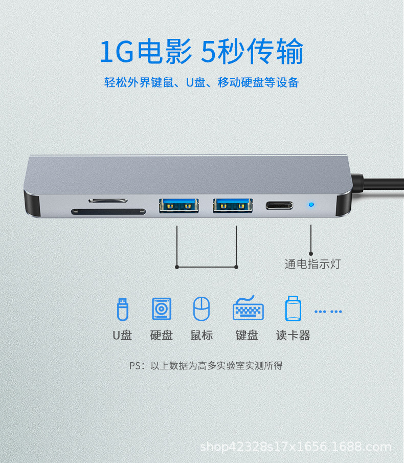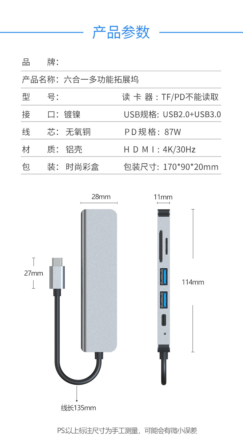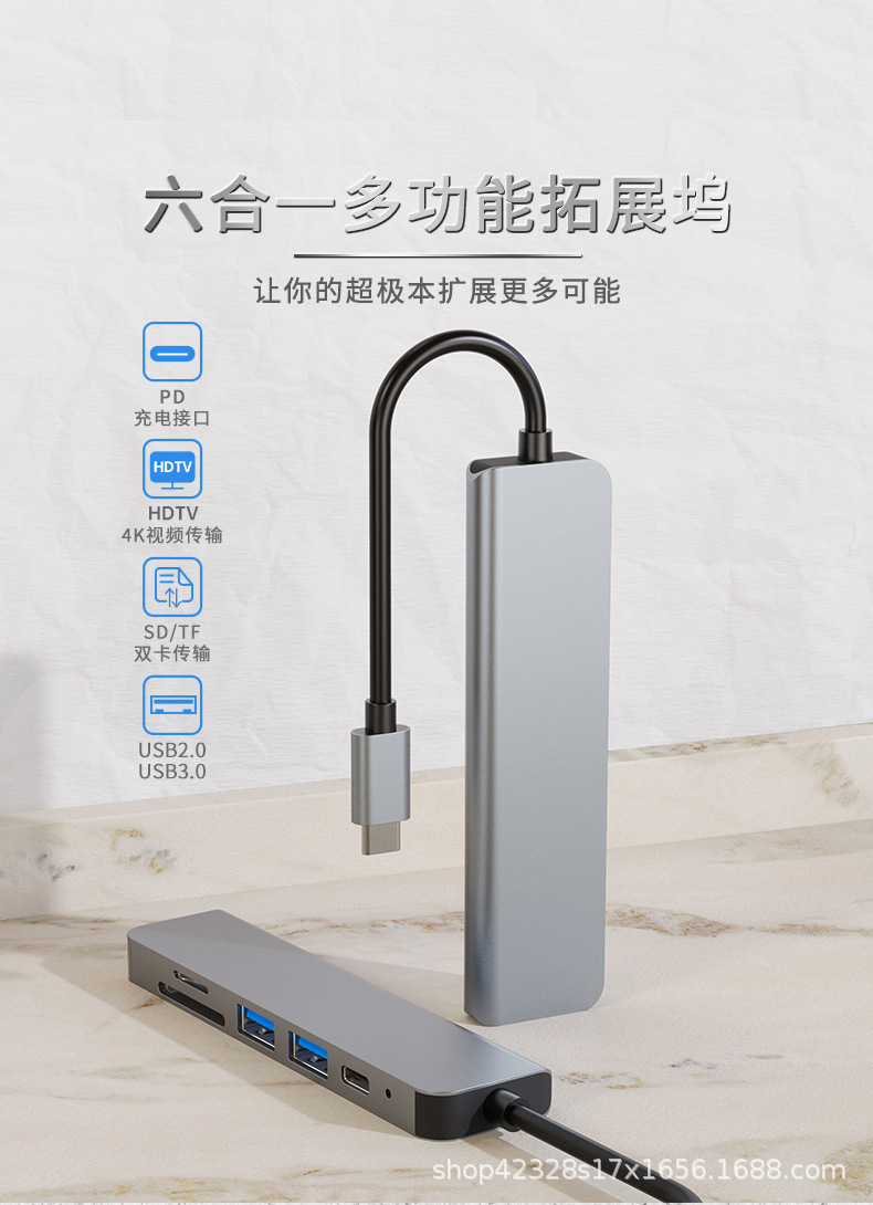 6-in-1 확장 도크 타입-C 허브 컴퓨터 4K USB-C PD 충전 변환 HDMI 허브 다기능스토어 가기