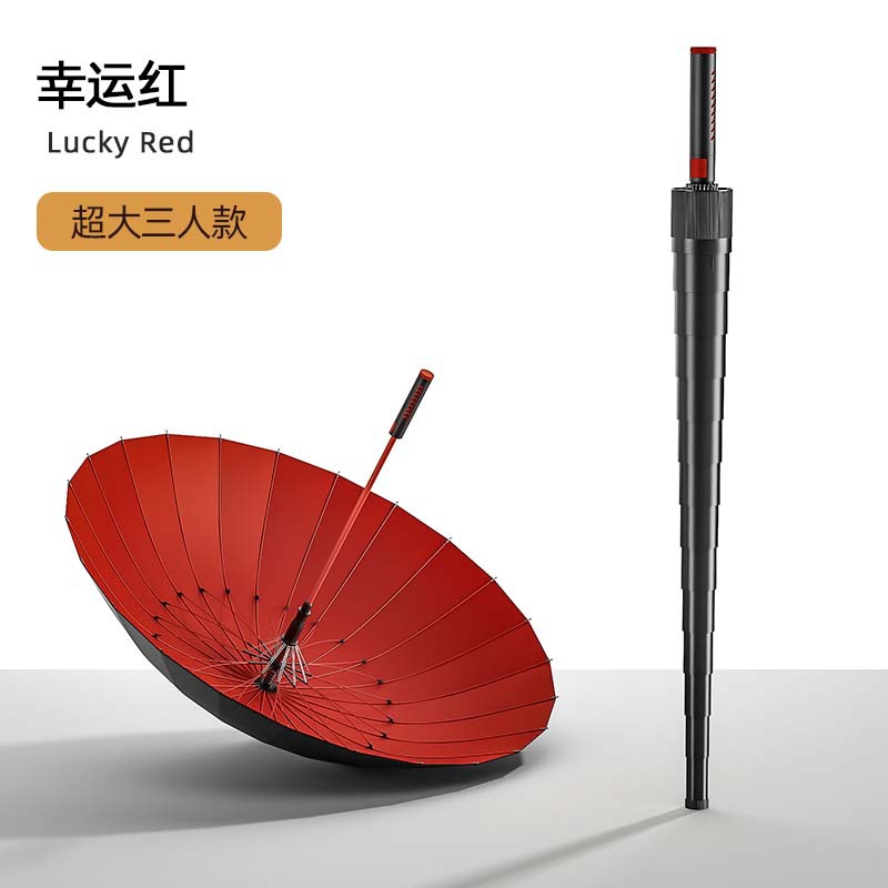 • 확대우산커버 - 갈비뼈 24개 - 비닐자동 - 럭키레드 [특대형 3인모델]