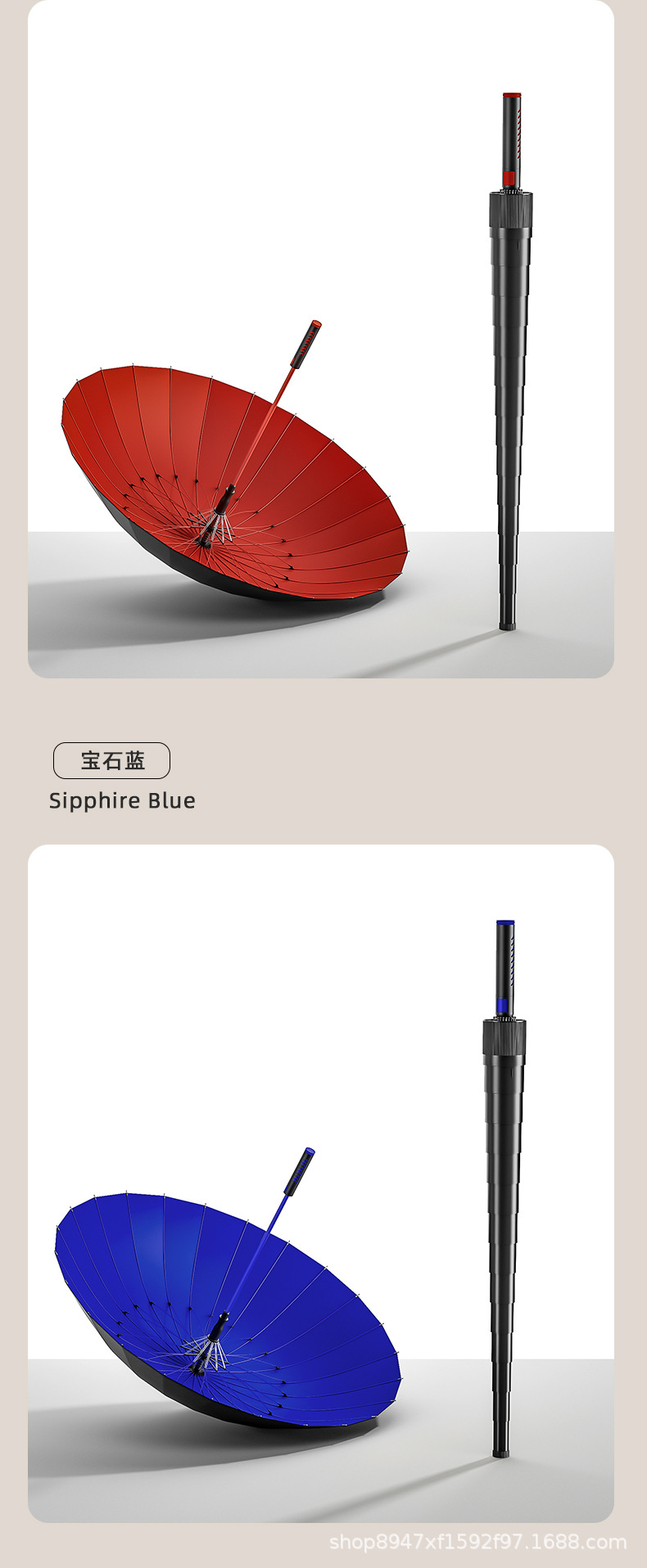 • 확대된 우산커버 - 24갈비 - 비닐자동 - 사파이어블루 [특대형 3인모델]