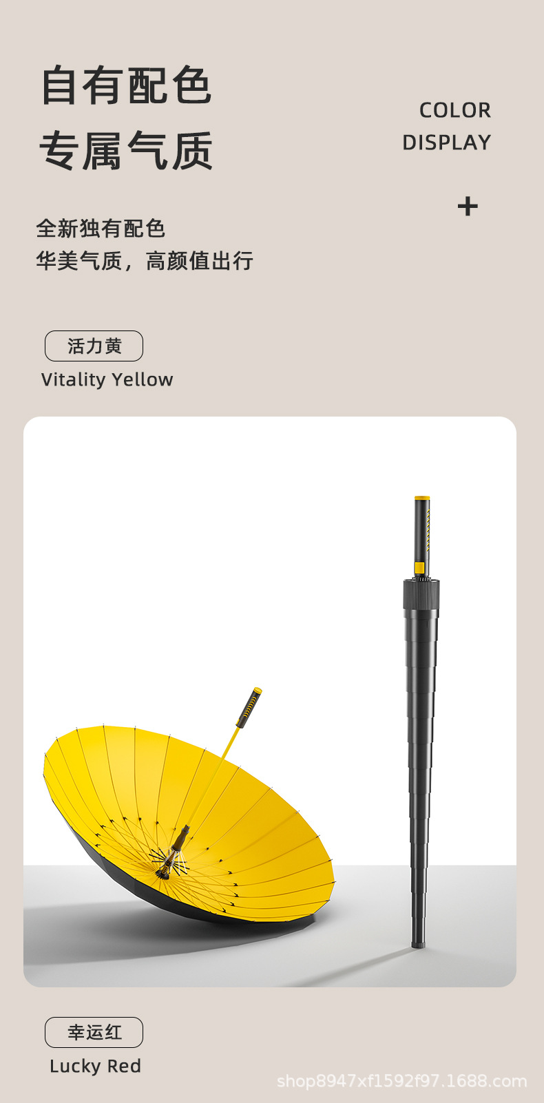 • 확대된 우산커버 - 24갈비 - 비닐자동 - 바이브런트옐로우 [특대형 3인모델]