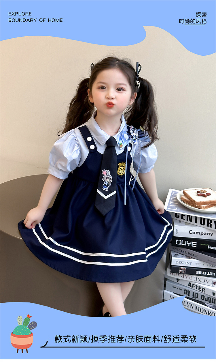 소녀의 학교 스타일 공주 원피스 2025 여름 새로운 어린이 가짜 두 조각 JK 원피스 소녀 주디 스커트스토어 가기