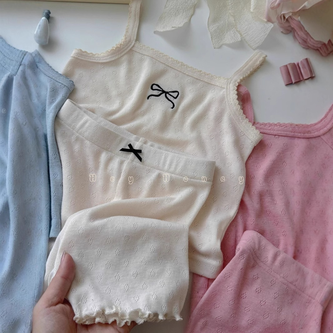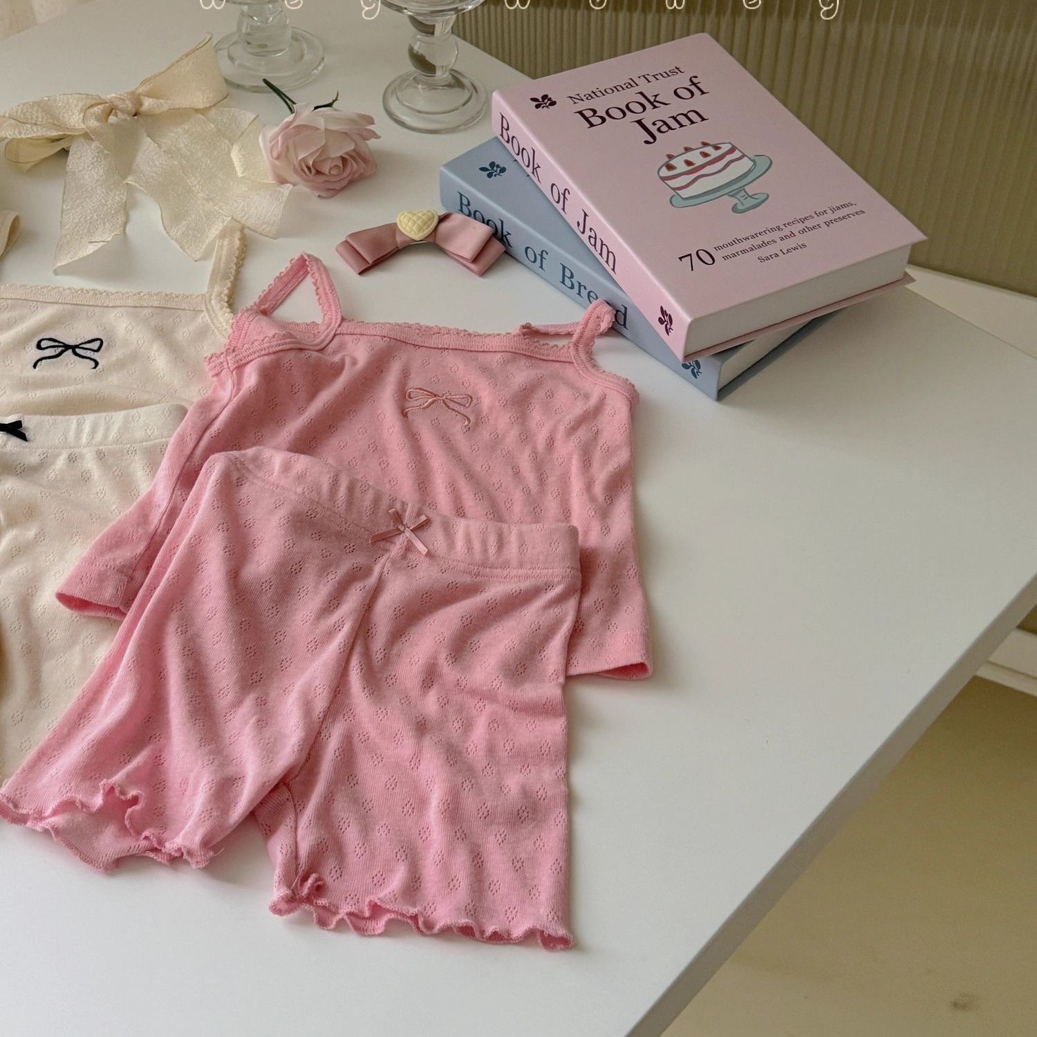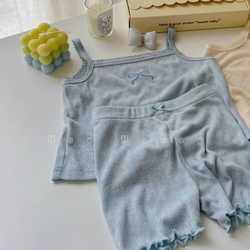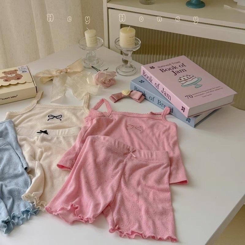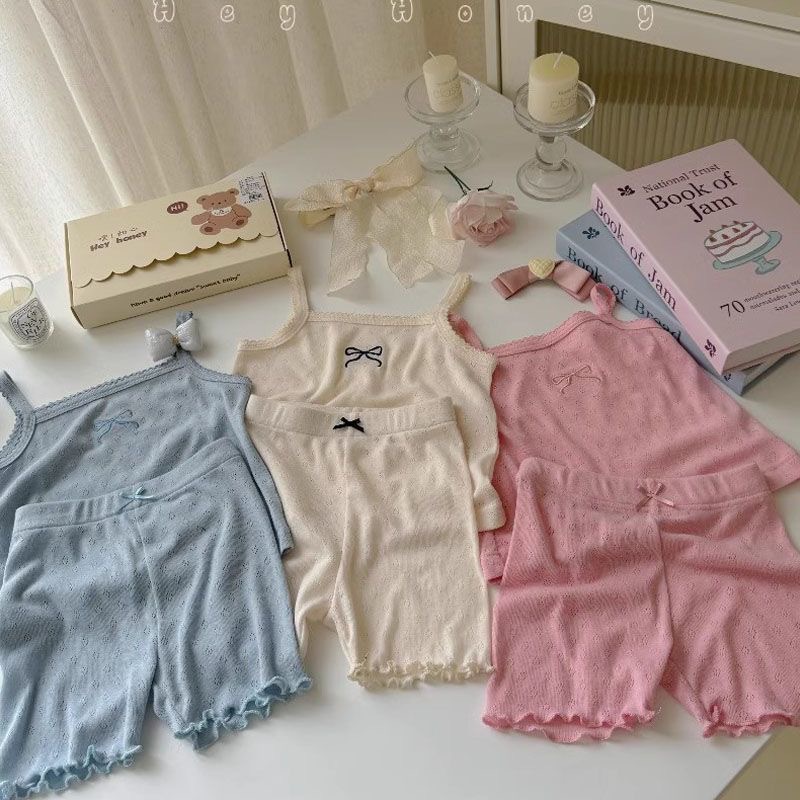 소녀 잠옷 여름 얇은 어린이 호흡 면 메쉬 홈 옷 아기 소녀 민소매 조끼 슬링 세트