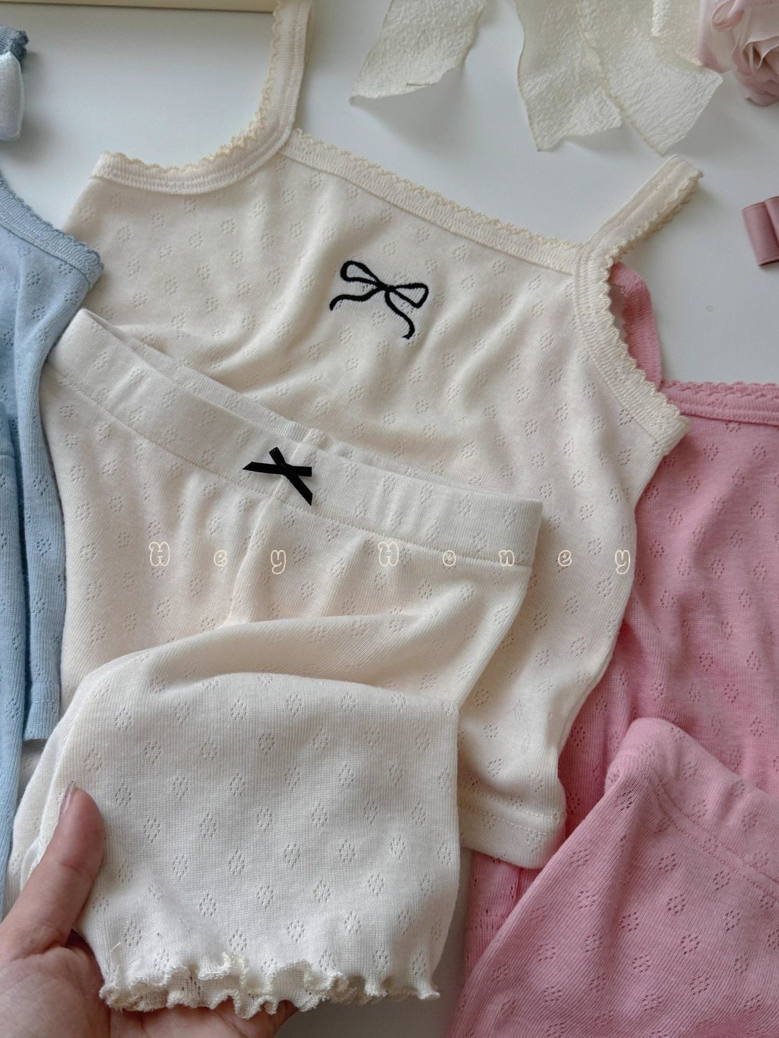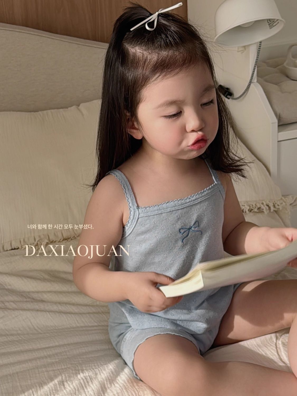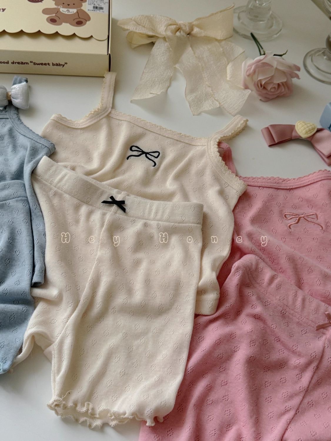 소녀 잠옷 여름 얇은 어린이 호흡 면 메쉬 홈 옷 아기 소녀 민소매 조끼 슬링 세트