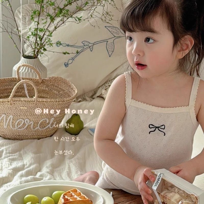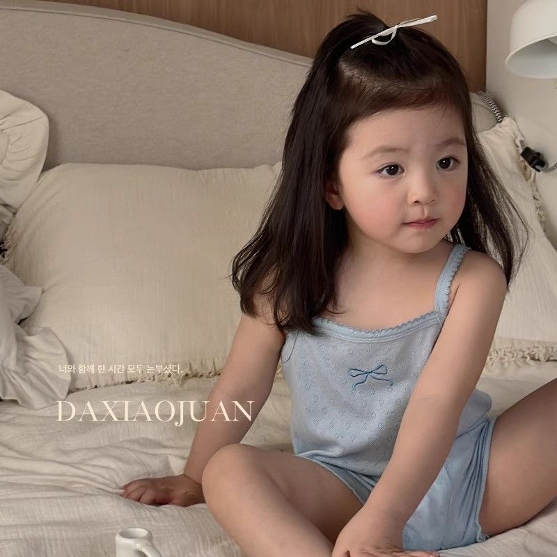 소녀 잠옷 여름 얇은 어린이 호흡 면 메쉬 홈 옷 아기 소녀 민소매 조끼 슬링 세트스토어 가기