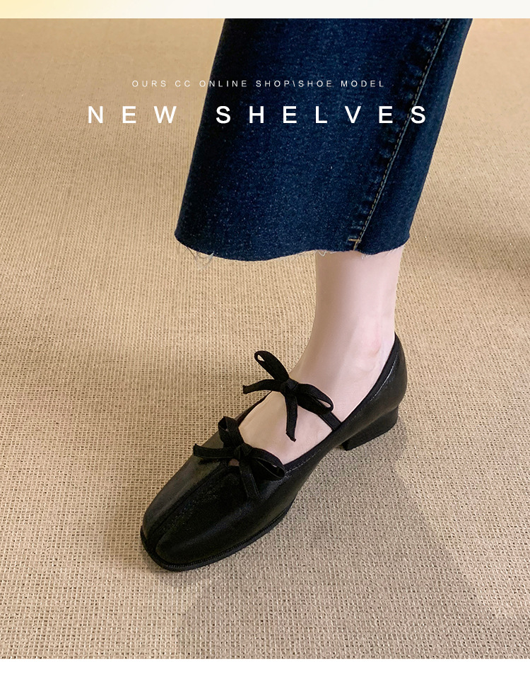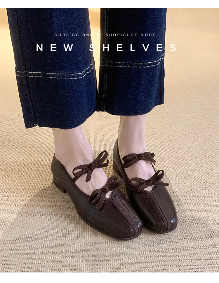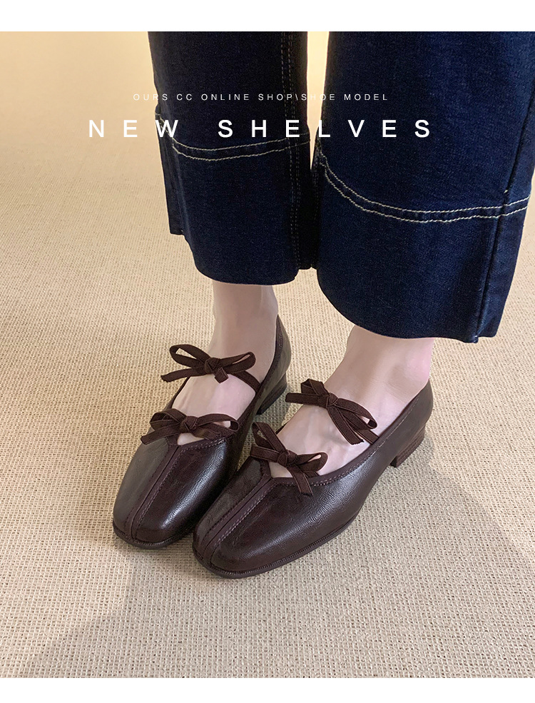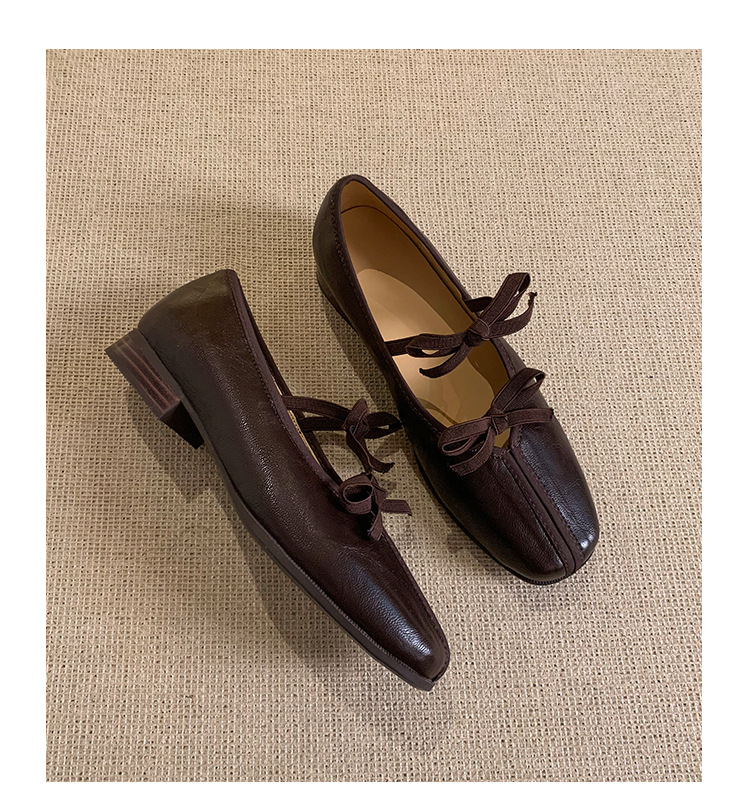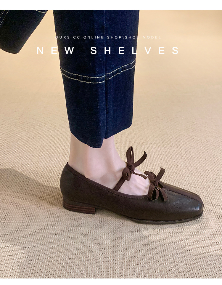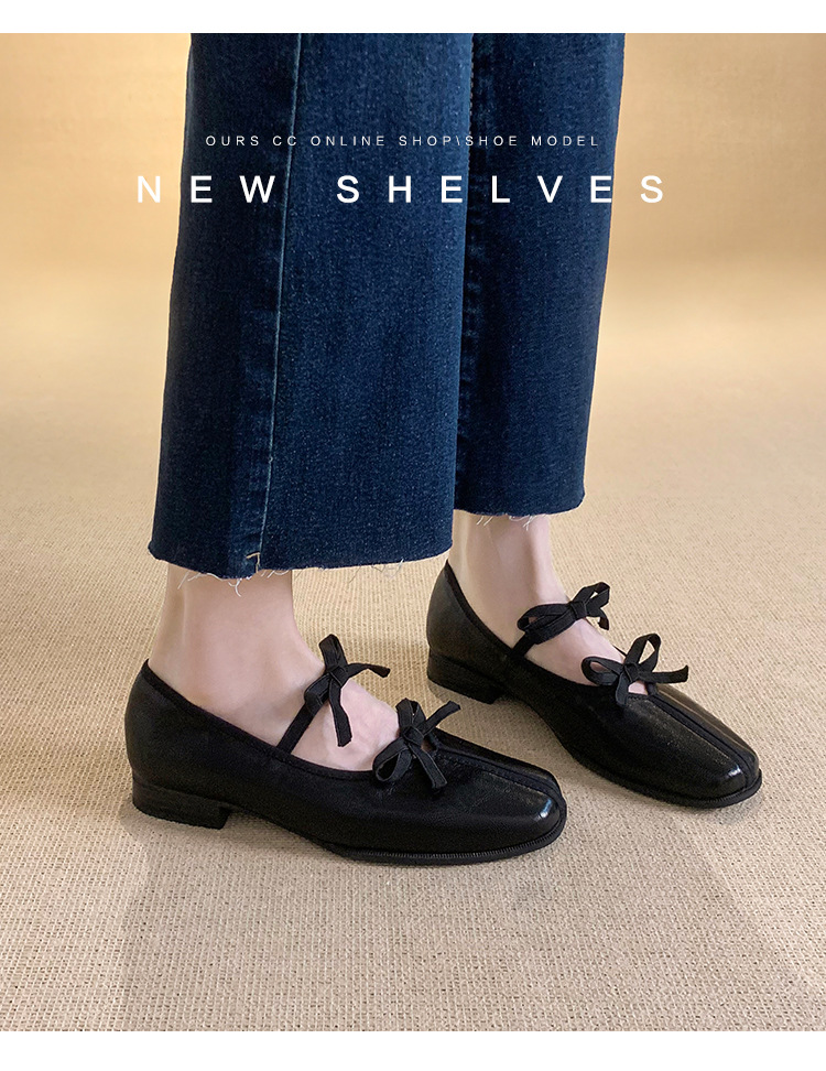수제 소프트 가죽 스퀘어 토 레트로 보우 메리 제인 신발 여성용 얕은 입 슬립 온 로우 힐 프렌치 발레 스타일 신발스토어 가기