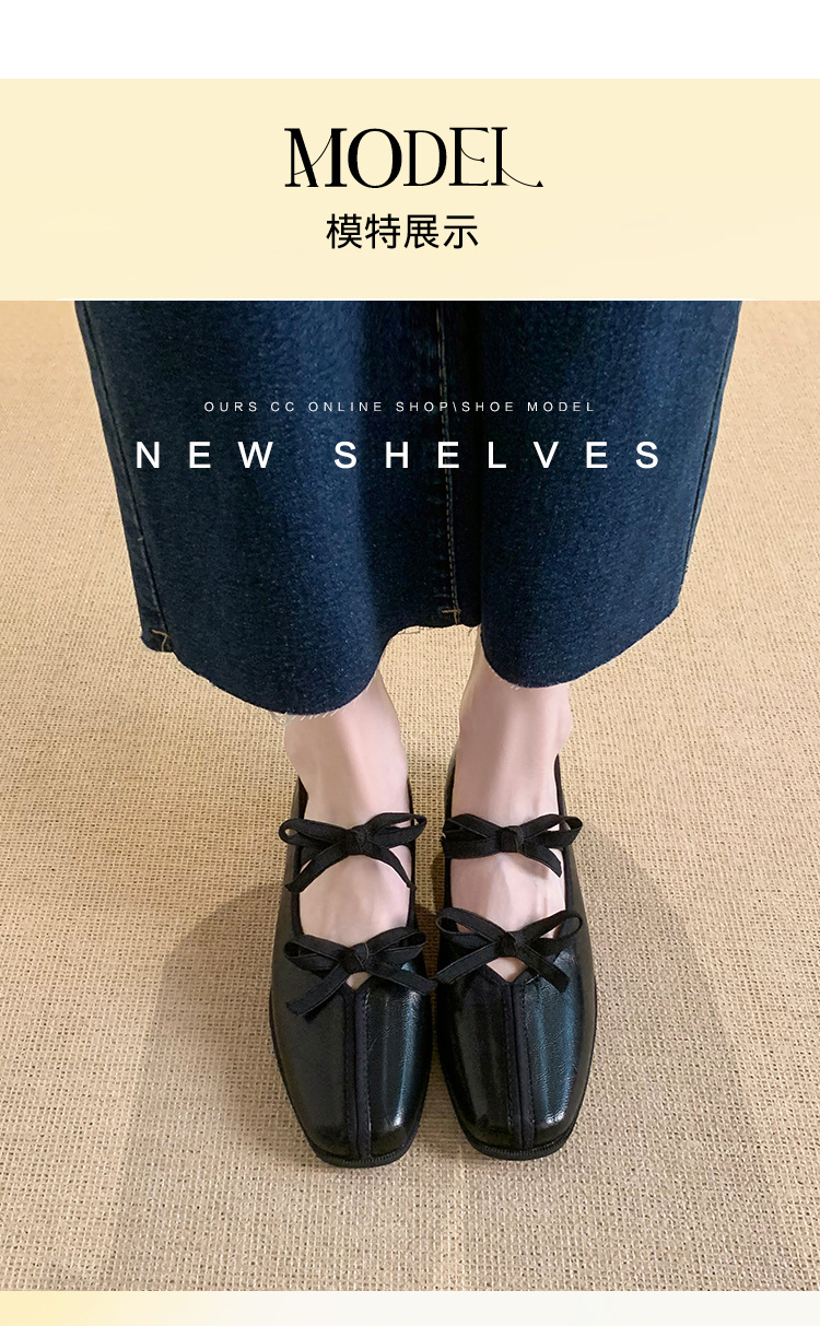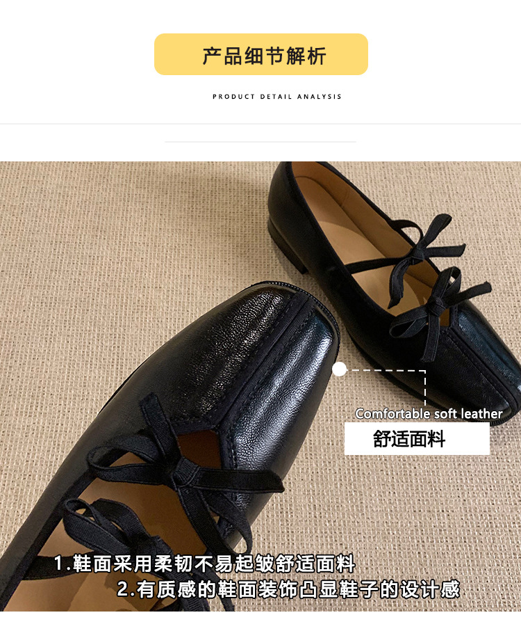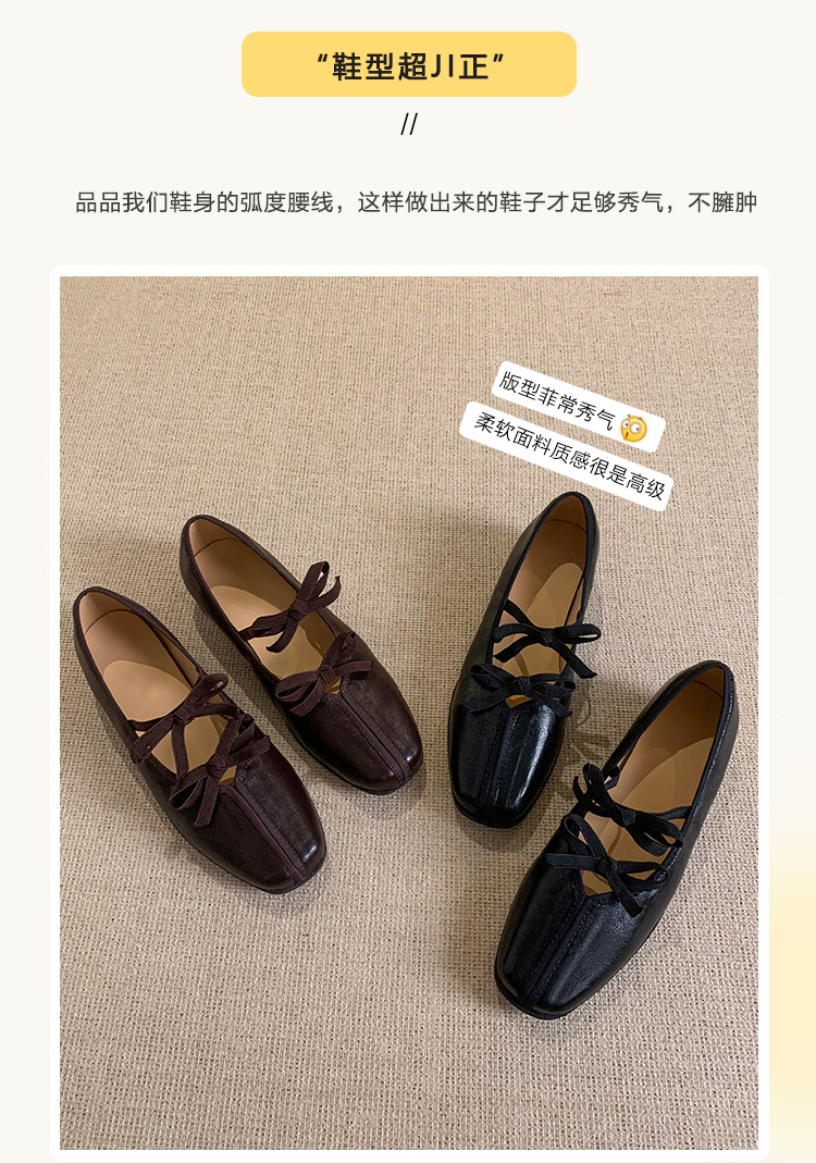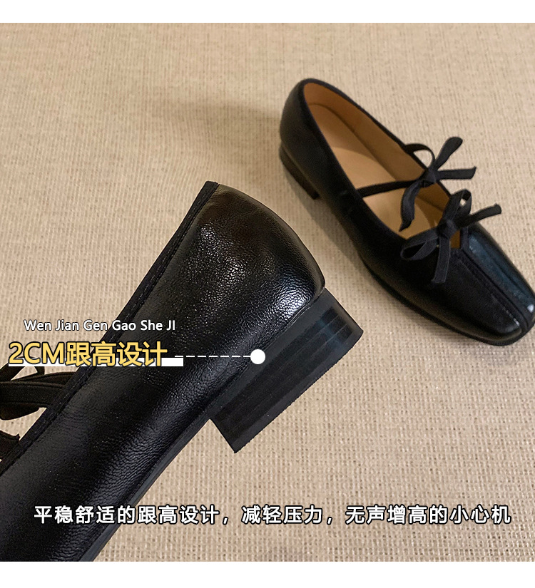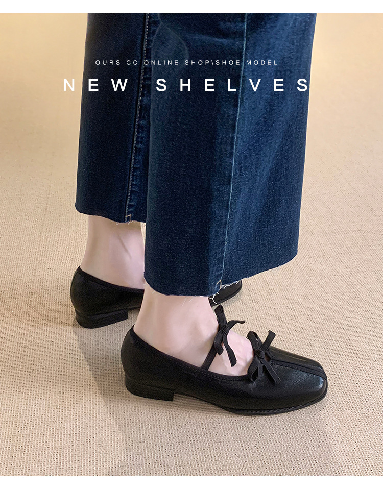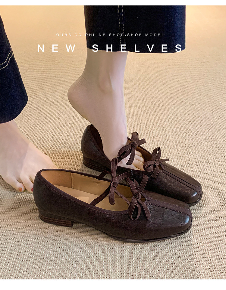 수제 소프트 가죽 스퀘어 토 레트로 보우 메리 제인 신발 여성용 얕은 입 슬립 온 로우 힐 프렌치 발레 스타일 신발스토어 가기