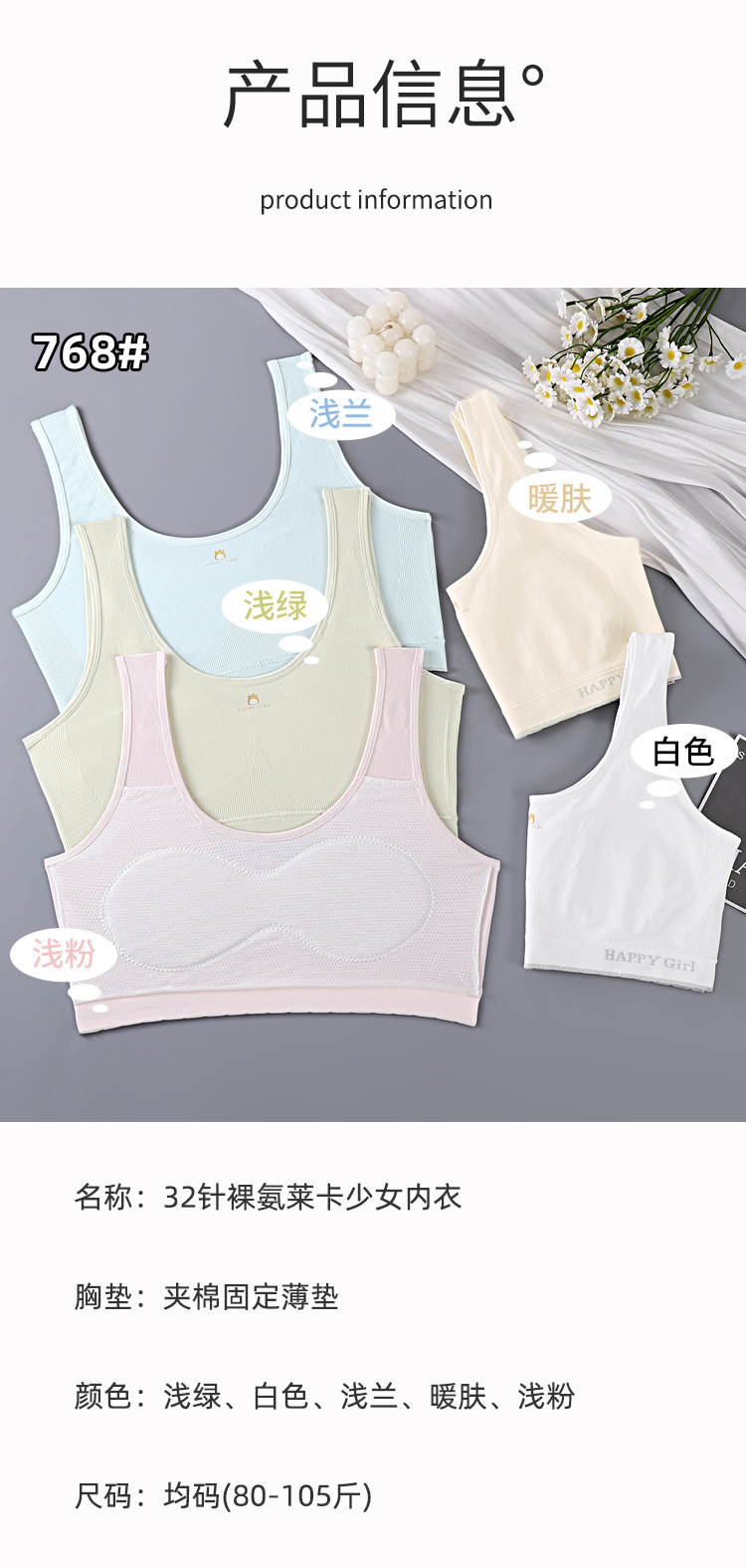여아 속옷, 발달기, 와이어 프리 아동용 브라, 여아 조끼, 얇은, 중대형 아동용 순면 브라스토어 가기