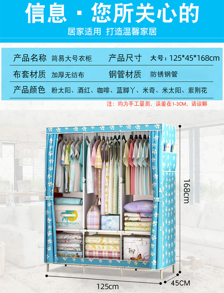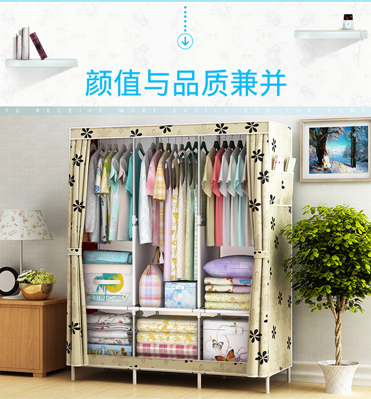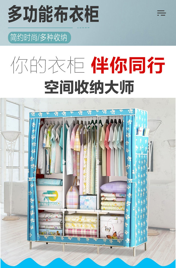 간이 옷장 기숙사 간이 조립 완전 밀폐형 천 옷장 임대실 수납장 가정용 강철 파이프 패브릭 옷장스토어 가기