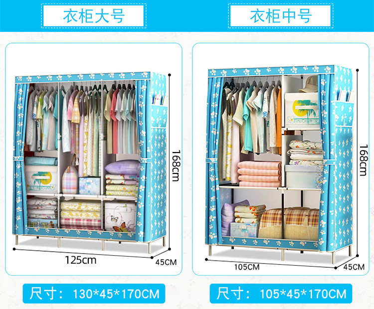 간이 옷장 기숙사 간이 조립 완전 밀폐형 천 옷장 임대실 수납장 가정용 강철 파이프 패브릭 옷장