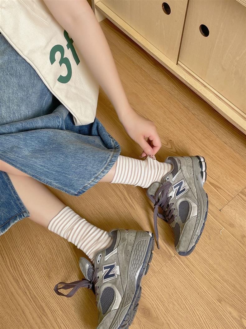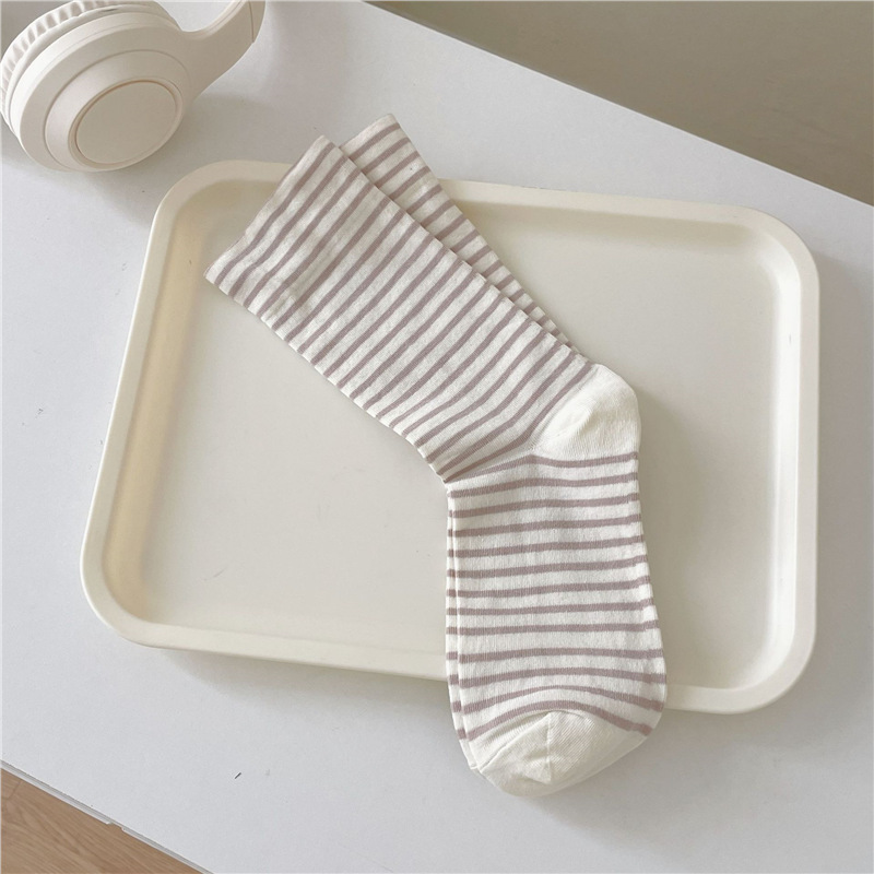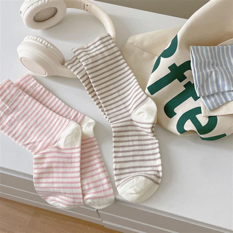크림 스트라이프 양말 어린이 중간 길이 양말 봄 및 여름 얇은 간단한 정보 유행 한국 스타일 학생 일본식 여름 스타킹스토어 가기