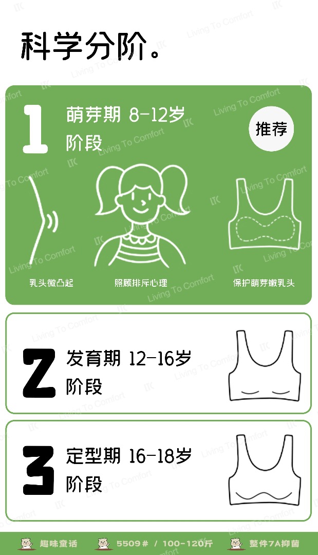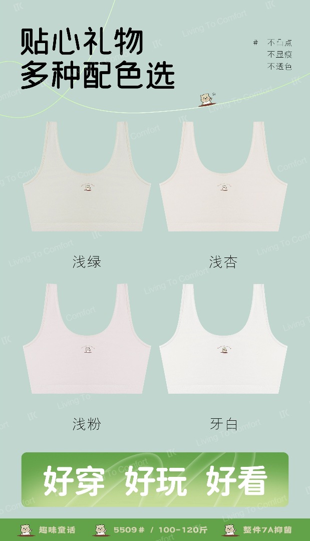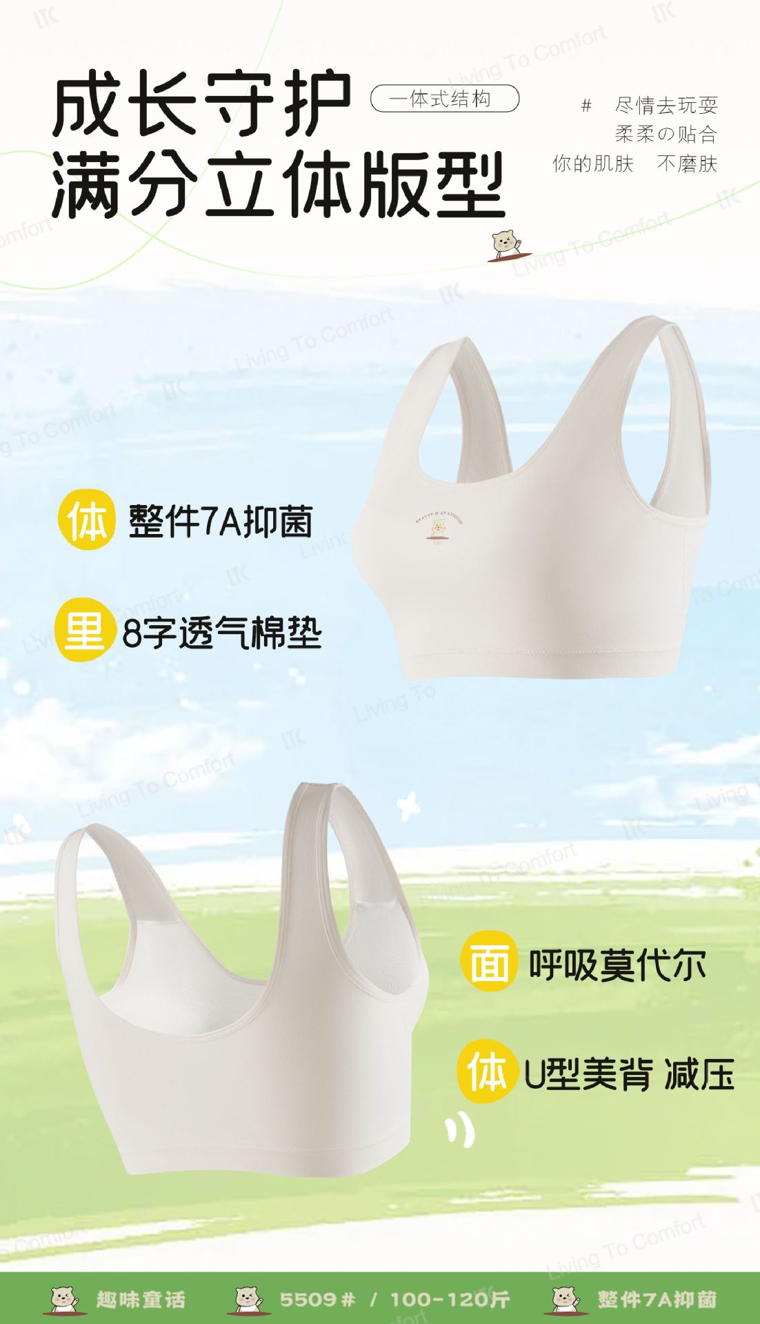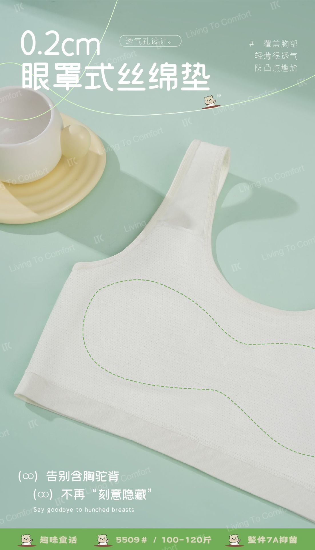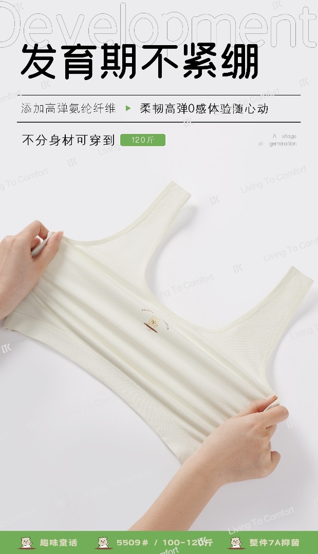 5509 단계 I 소녀 개발 넓은 어깨 끈 속옷 미끄럼 방지 소프트 스틸 링 고정 컵 조끼 스타일 가슴 랩