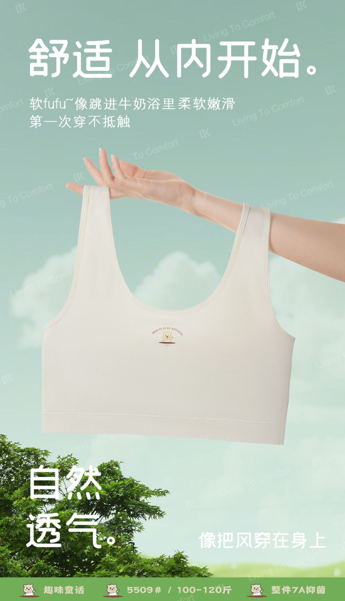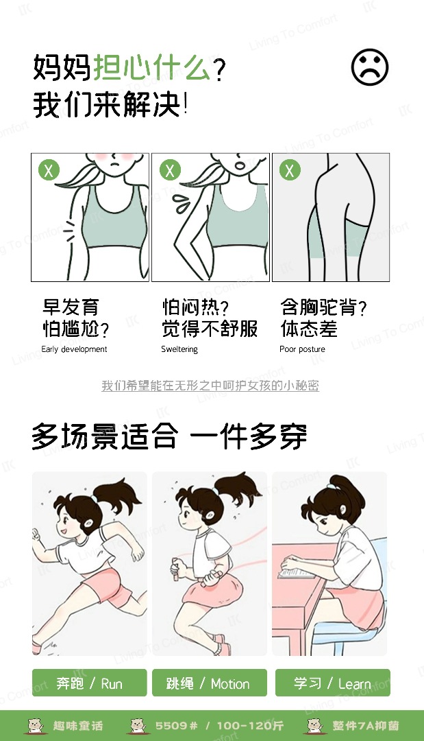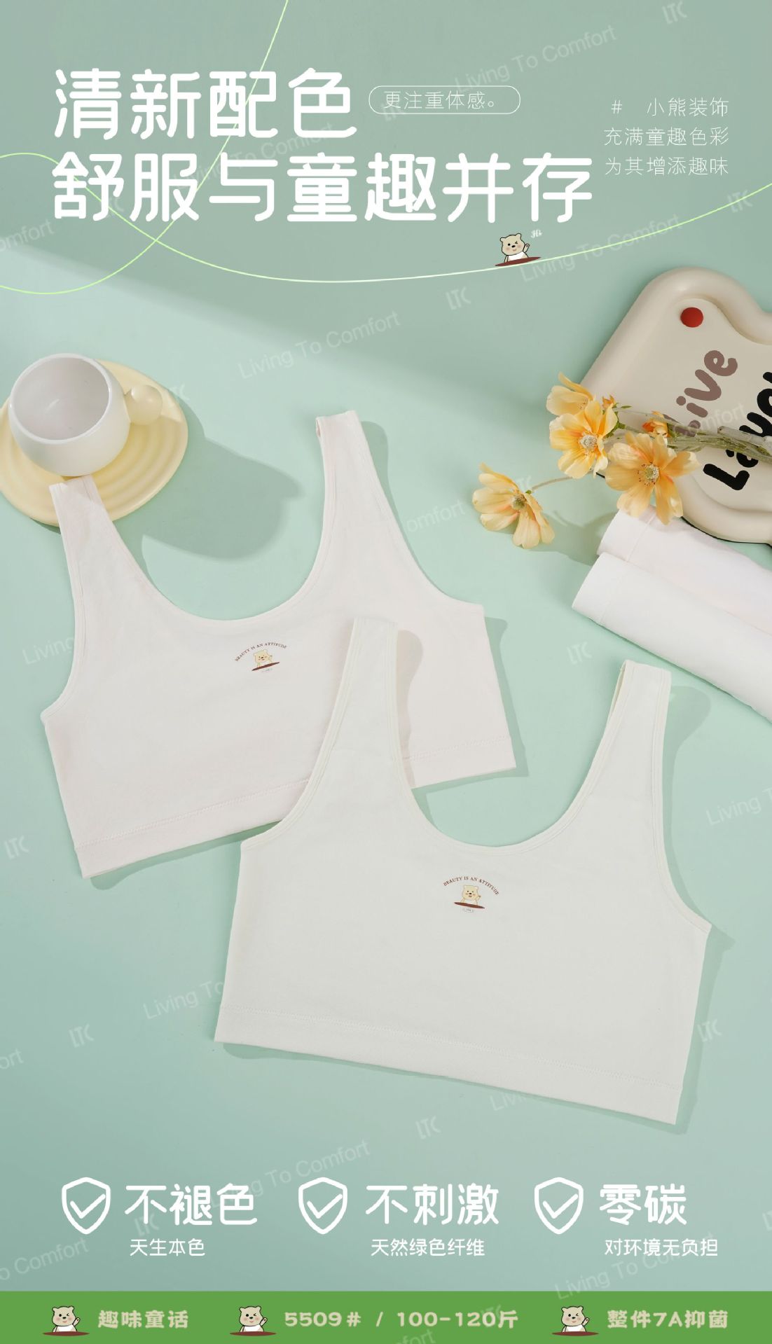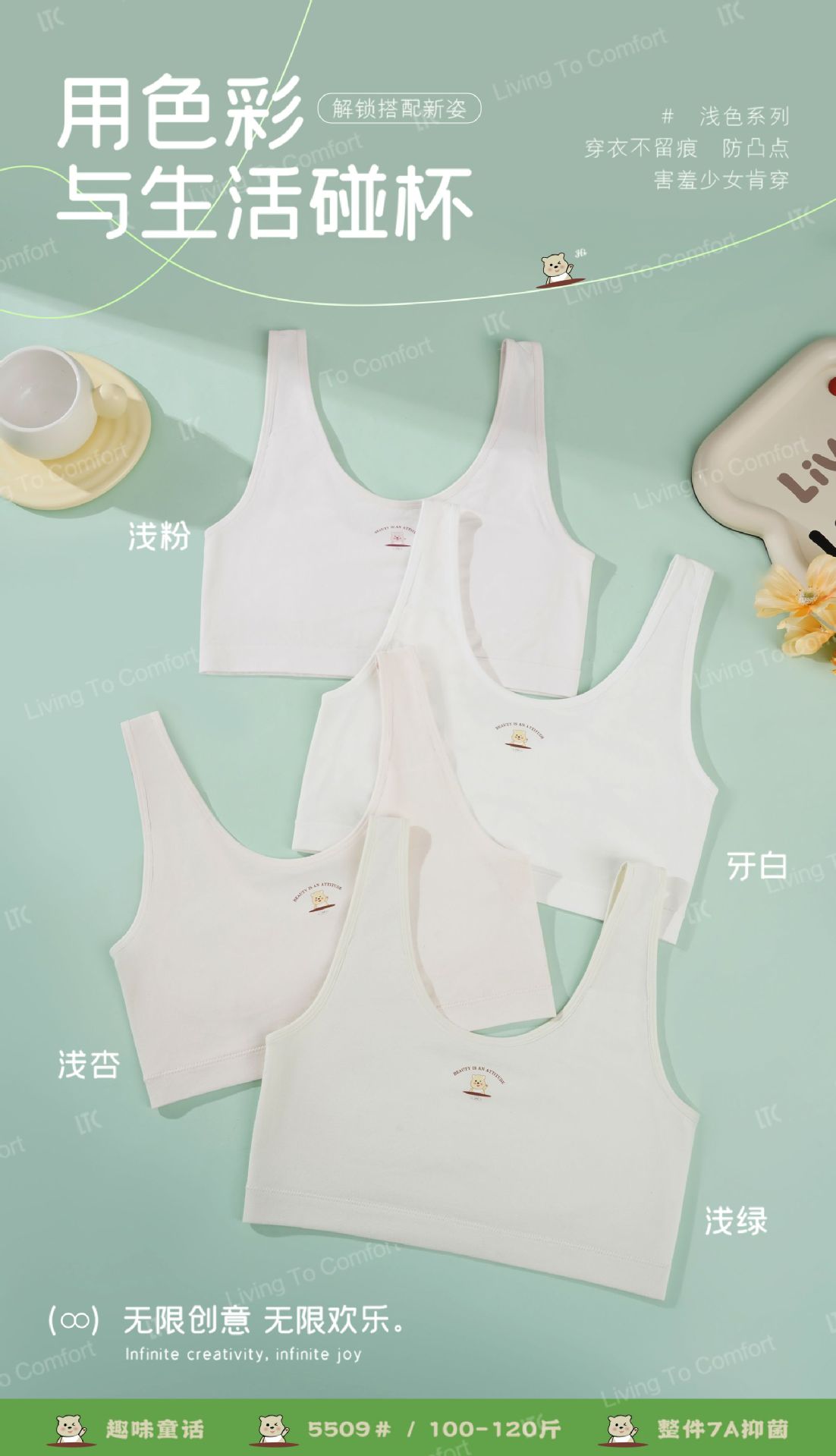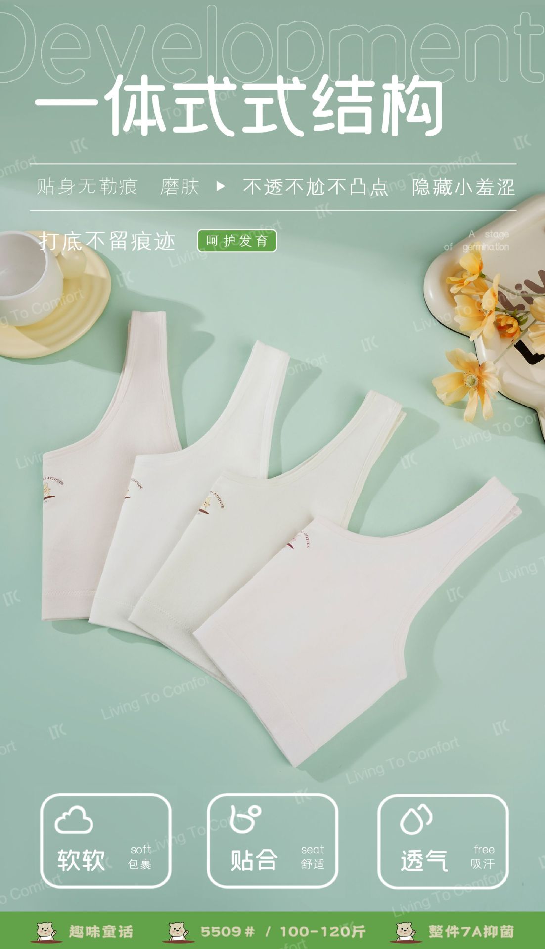 5509 단계 I 소녀 개발 넓은 어깨 끈 속옷 미끄럼 방지 소프트 스틸 링 고정 컵 조끼 스타일 가슴 랩