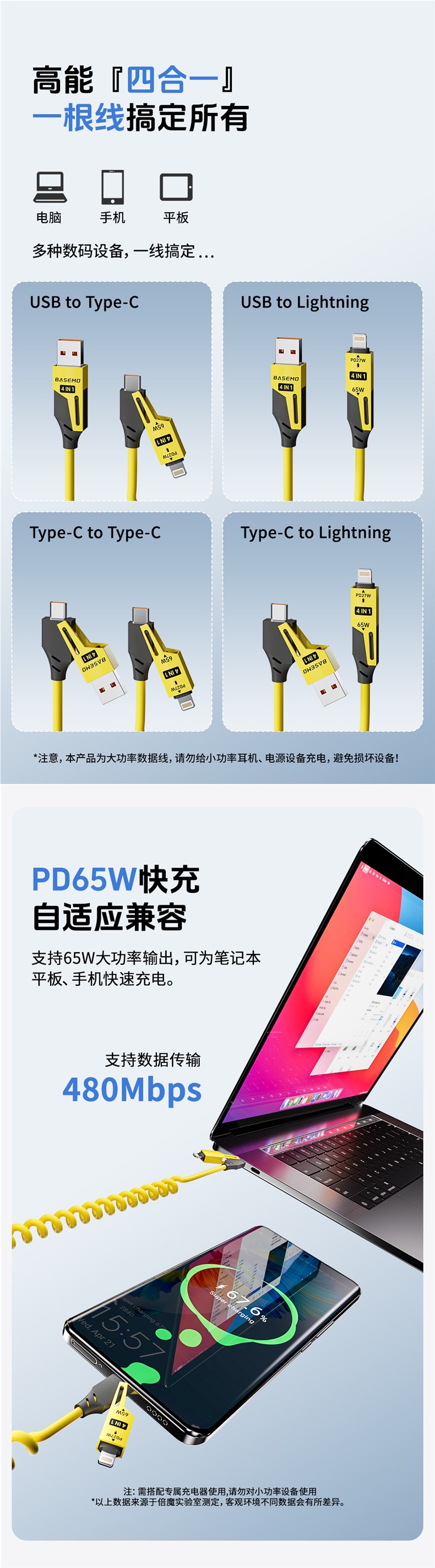 Apple Huawei 다기능 iphone16 데이터 케이블 carpla에 적합한 Beimo 스프링 텔레스코픽 4-in-1 65w스토어 가기