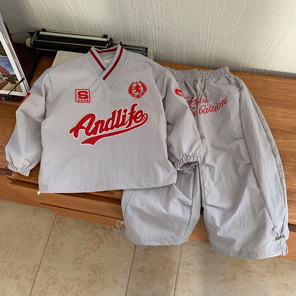 어린이 세트 봄과 가을 2025 새로운 한국판 소년 소녀 편지 툴링 팬카 세트 어린이 투피스 세트