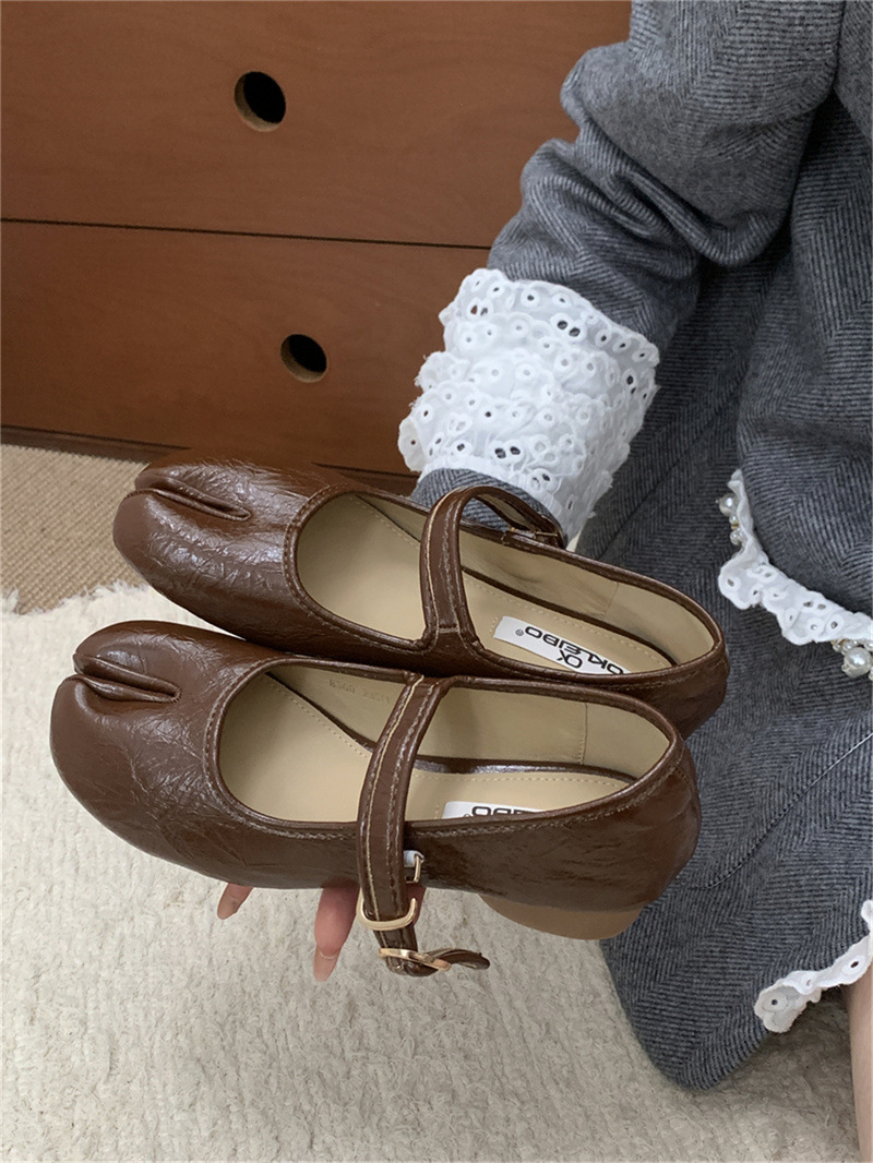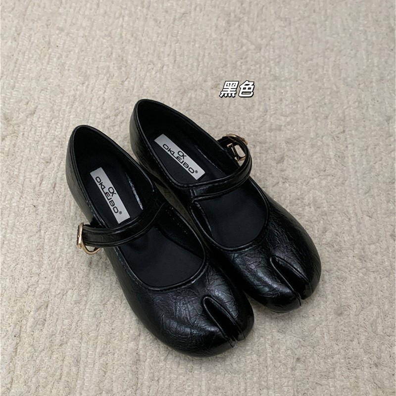 프랑스 로우 힐 돼지의 트로터 신발 여성 신발 2025 새 여름 실버 Mary Jane 스플릿 발가락 말굽 작은 가죽 신발