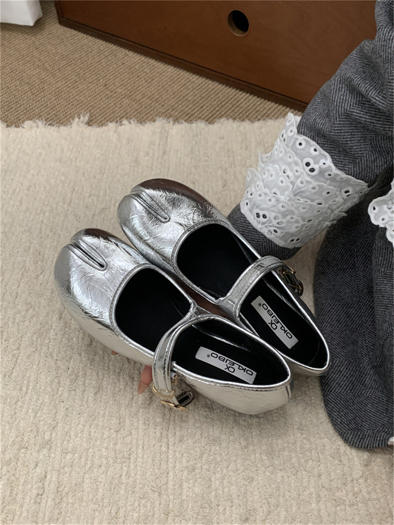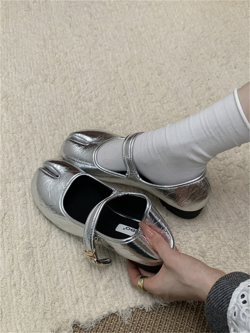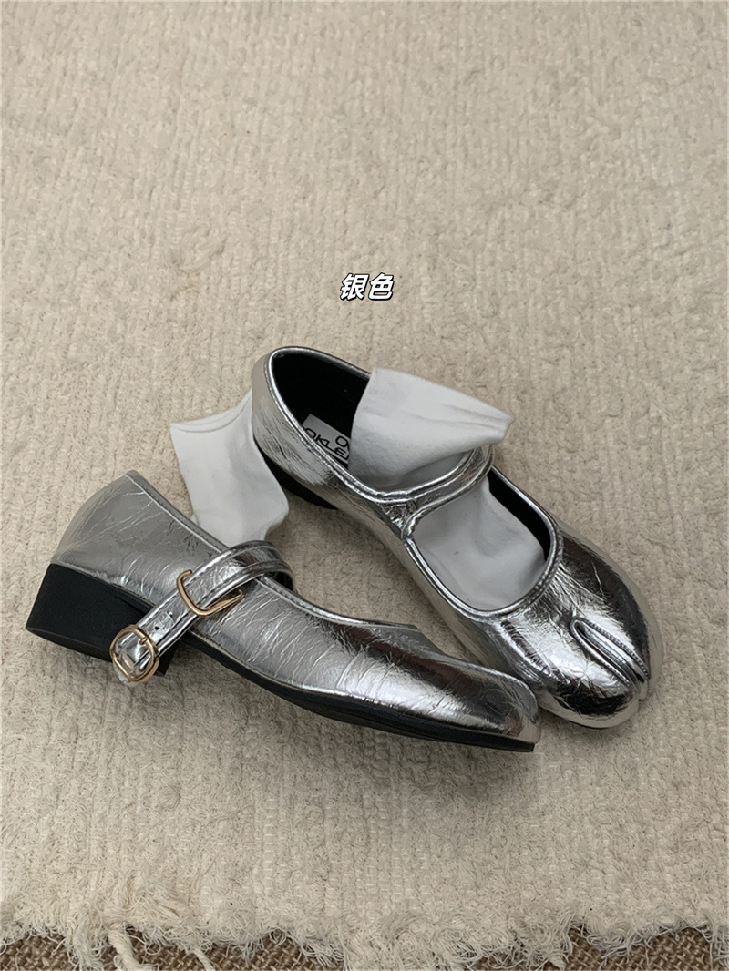 프랑스 로우 힐 돼지의 트로터 신발 여성 신발 2025 새 여름 실버 Mary Jane 스플릿 발가락 말굽 작은 가죽 신발스토어 가기