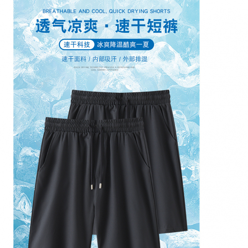 2025 새로운 여름 얼음 실크 속건 반바지 남성 스포츠 및 레저 속건 여름 시원한 5점 비치 바지스토어 가기