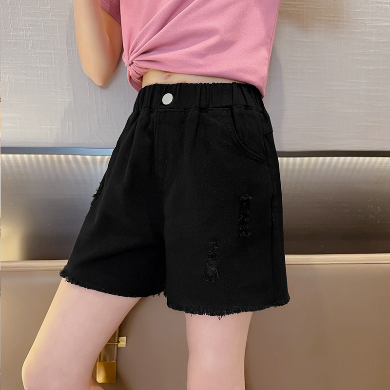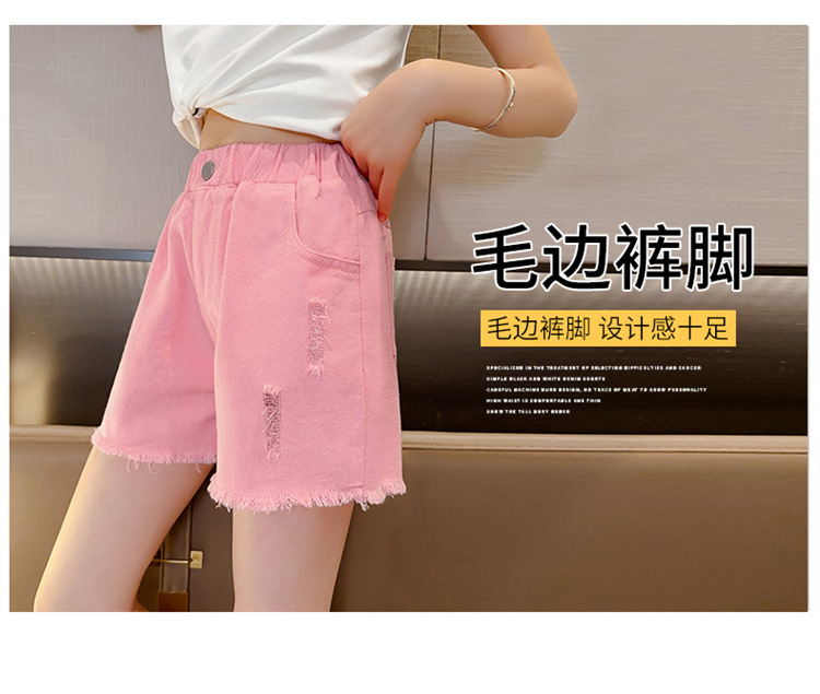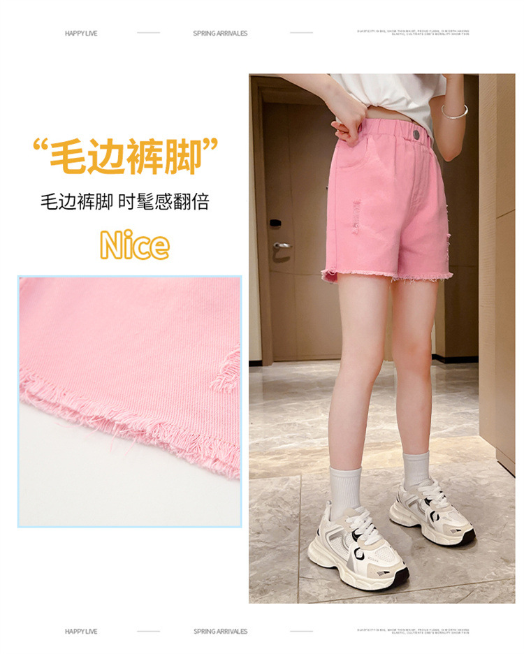 소녀 여름 반바지 2025 새로운 스타일 중대형 어린이 핫 바지 소녀 세척 코튼 릭 엣지 어린이 반바지 여름 착용