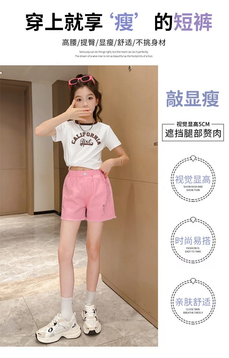 소녀 여름 반바지 2025 새로운 스타일 중대형 어린이 핫 바지 소녀 세척 코튼 릭 엣지 어린이 반바지 여름 착용스토어 가기