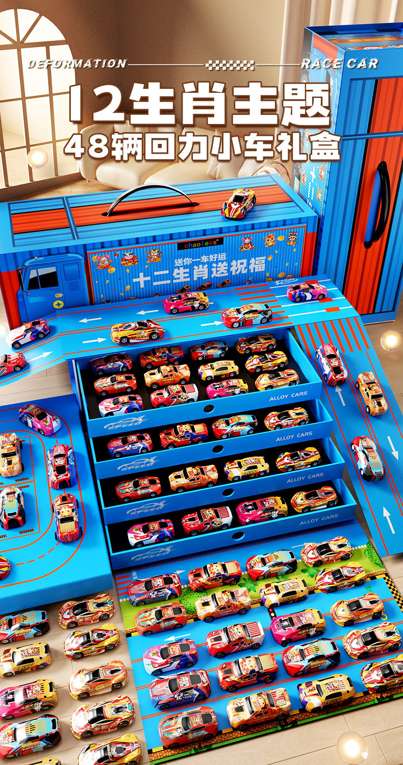 • 12간지 48 풀백 자동차 선물 상자 + 선물 가방