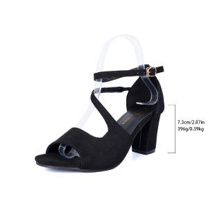 크로스보더 플러스 사이즈 2025 여름 신작 원라인 버클 로마 두꺼운 굽 스웨이드 샌들 여성 피쉬 입 오픈 토우 하이힐 샌들스토어 가기
