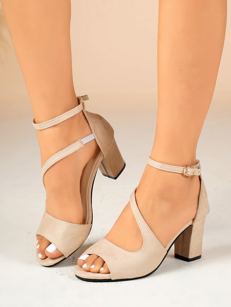 크로스보더 플러스 사이즈 2025 여름 신작 원라인 버클 로마 두꺼운 굽 스웨이드 샌들 여성 피쉬 입 오픈 토우 하이힐 샌들