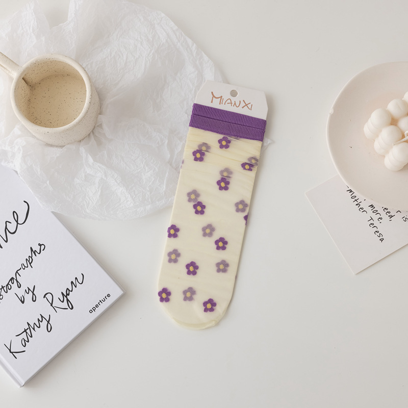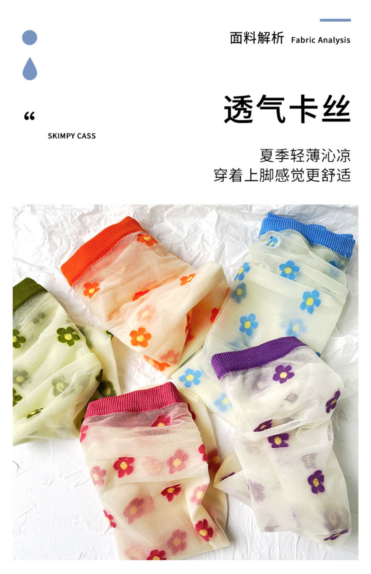 양말 여성의 여름 얇은 중간 양말 Ins 귀여운 일본 과일 꽃 투명 유리 실크 크리스탈 양말스토어 가기