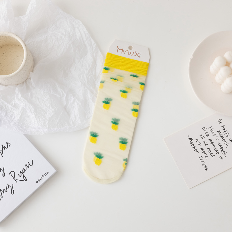 양말 여성의 여름 얇은 중간 양말 Ins 귀여운 일본 과일 꽃 투명 유리 실크 크리스탈 양말