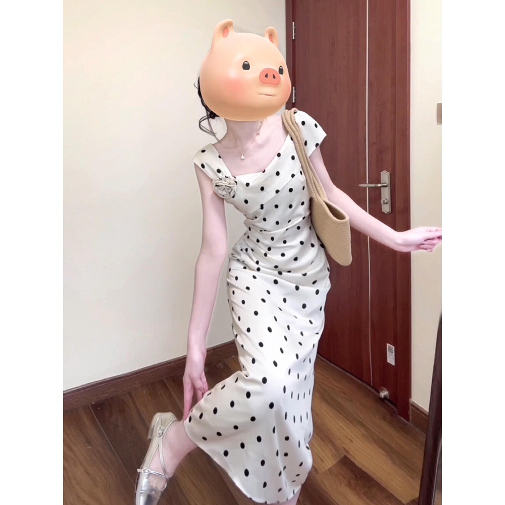 여름 화이트 폴라 도트 원피스 프랑스 우아한 엉덩이 원피스 봄 인기 착용 2025 새로운 여성 원피스스토어 가기