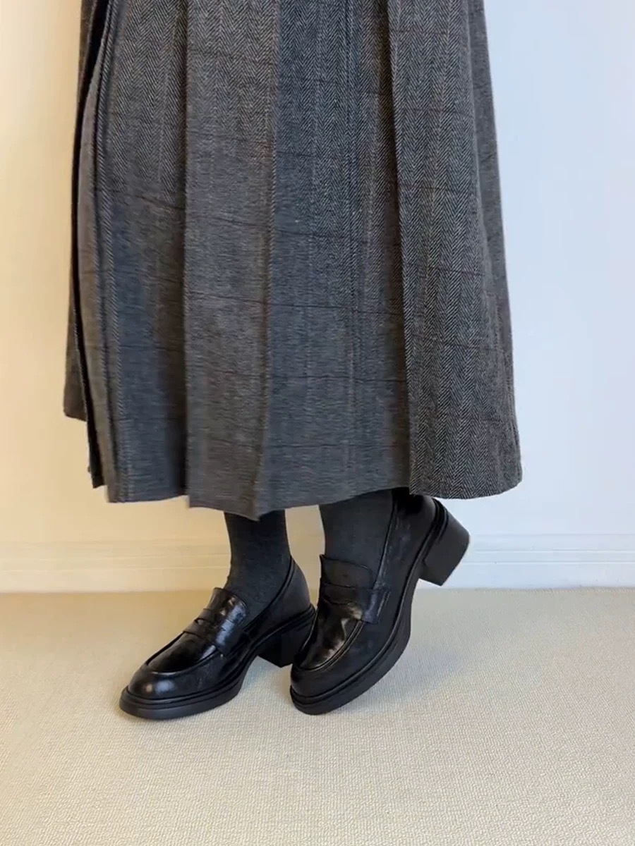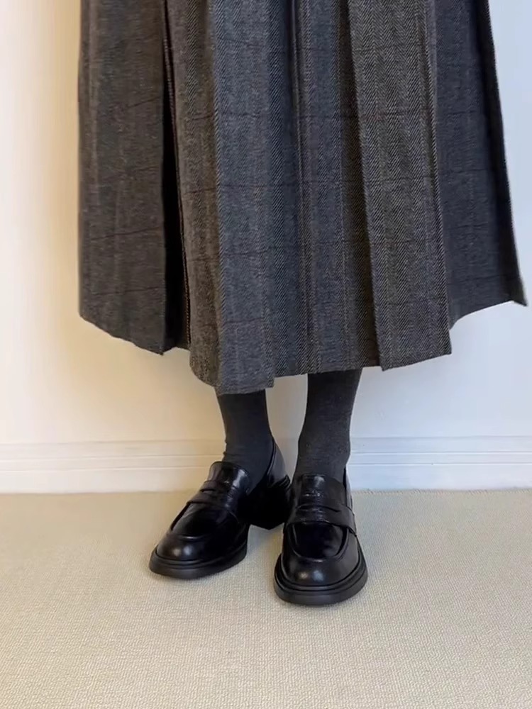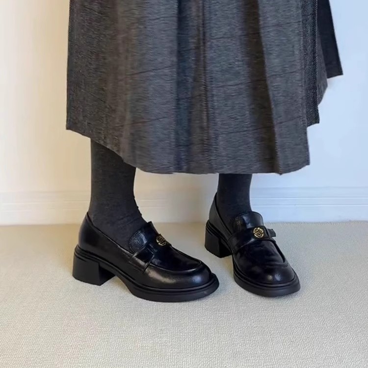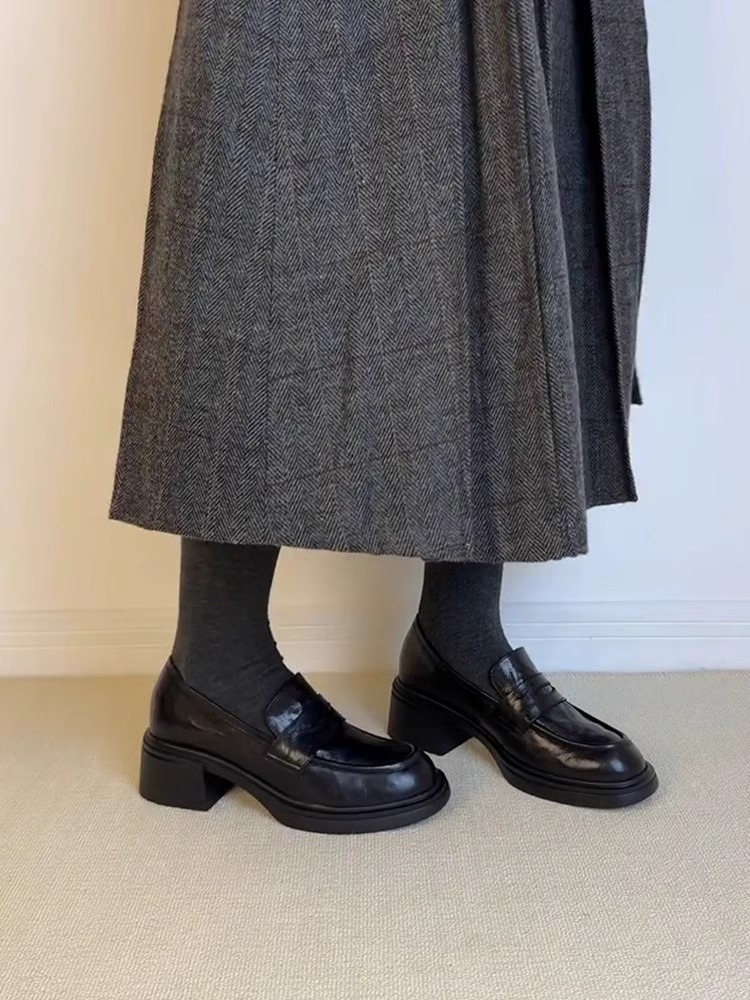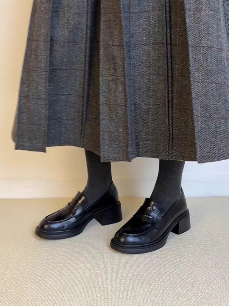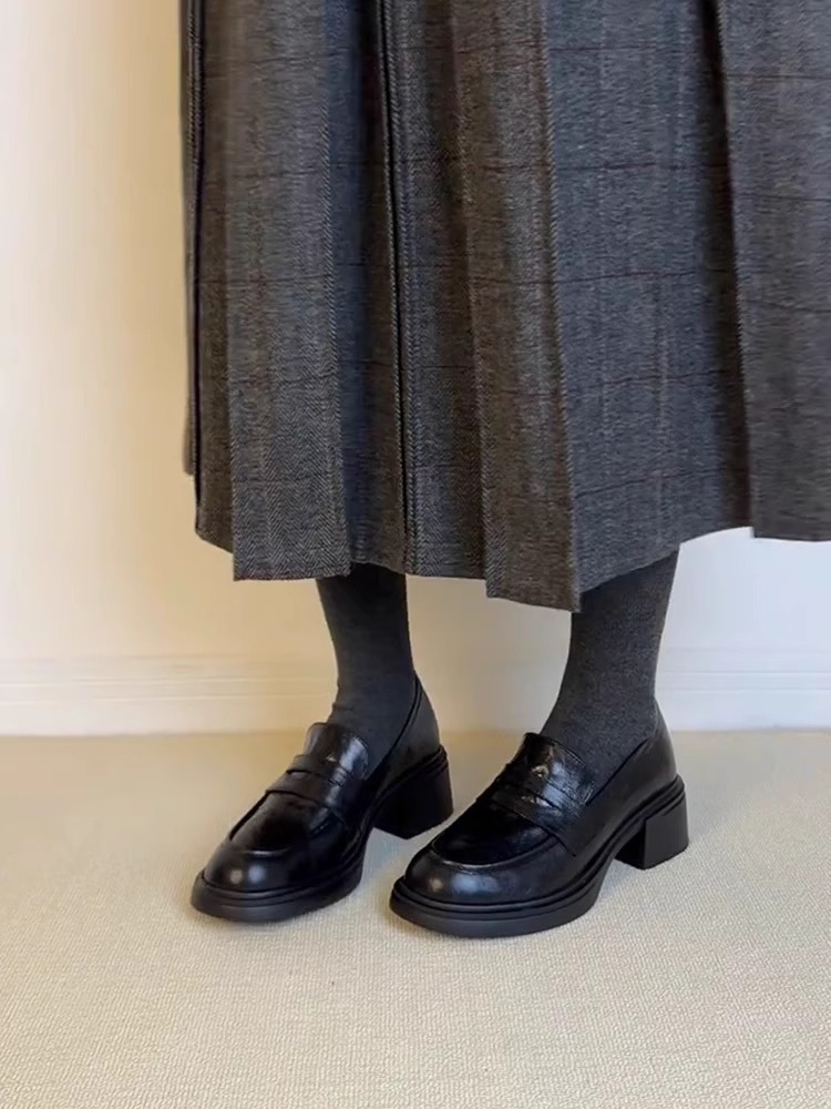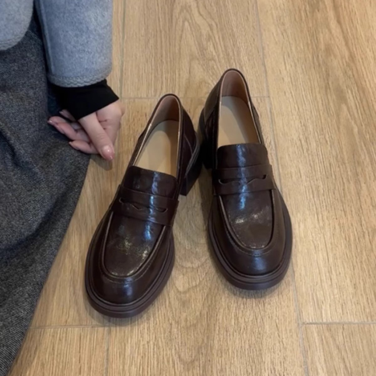 새로운 레트로 스타일의 여성용 통굽 로퍼, 원터치 슬립온 라운드 토 슈즈, 출퇴근용 다용도 레이지 슈즈스토어 가기